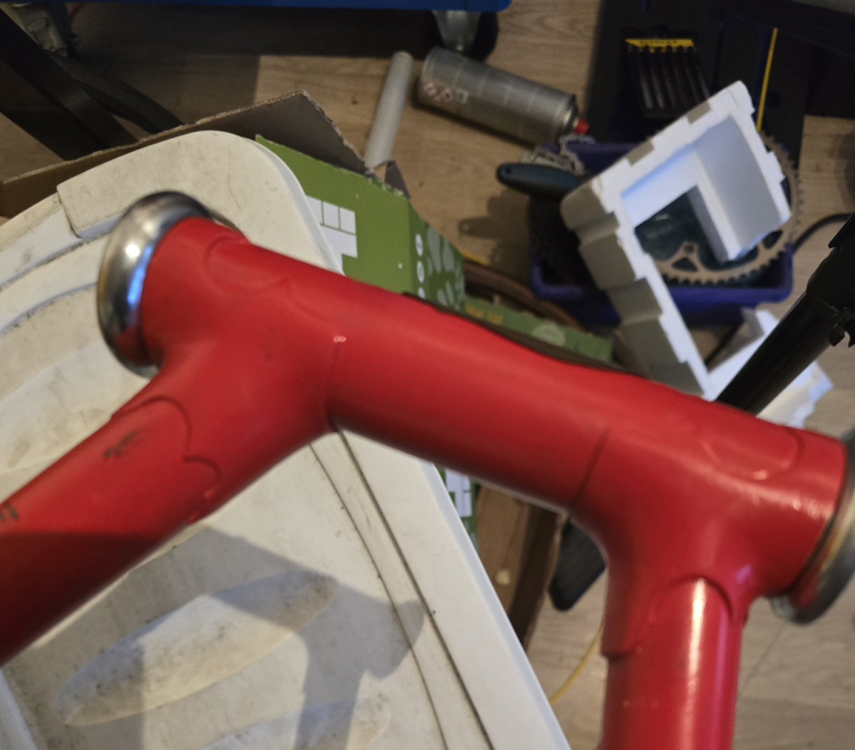 De voorvork uit de gele fiets is niet origineel !
