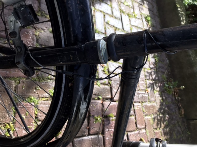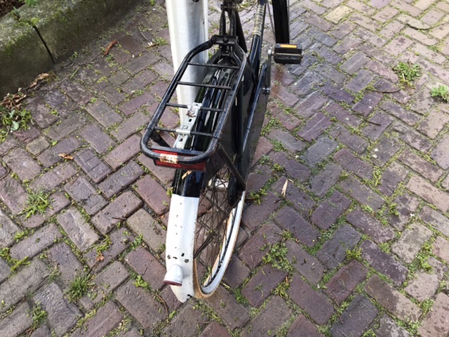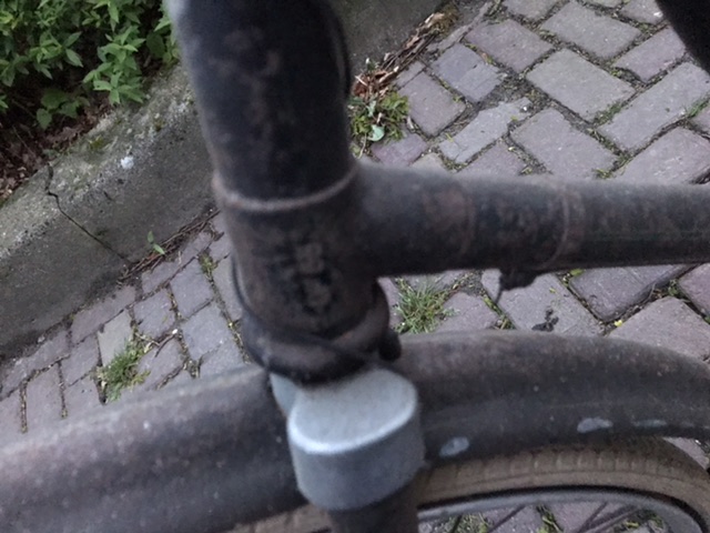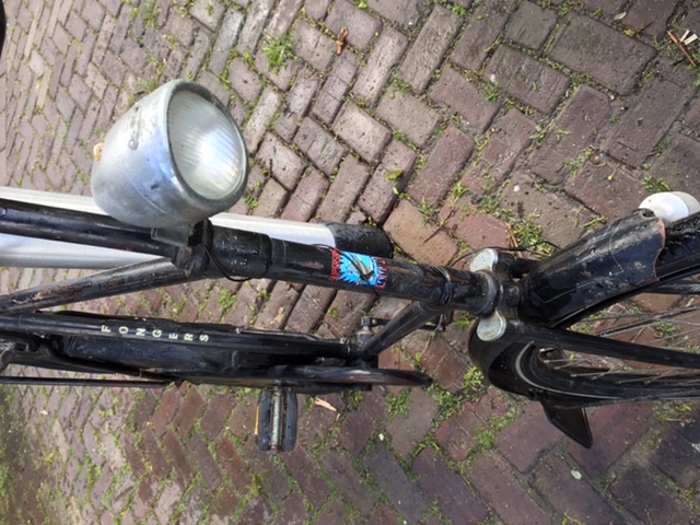 De foto's geven mij het idee dat de Fongers herenfiets later een keer gereviseerd is. D.w.z. ergens van nieuwe lak en de afwijkende gouden biezen is voorzien.