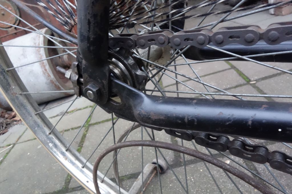 De smalle gereedschapsopname van de trapascups ken ik van Raleigh, maar misschien is dat algemeen Brits. Wie daar bijvoorbeeld een merk onderdelenfabrikant aan kan hangen is welkom. Wat in elk geval wel duidelijk is dat het een heel oud frame is.
