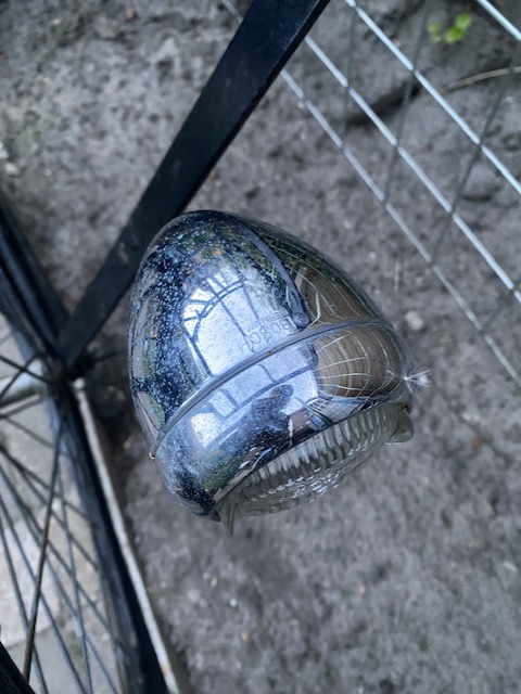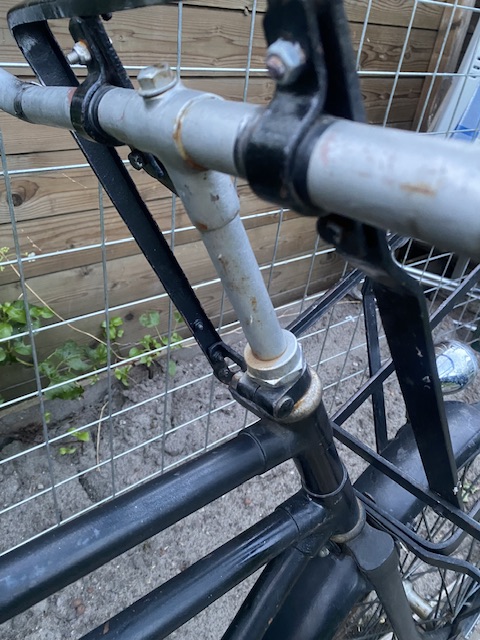 Oud ding, zeer doorleefd, ik hou daar wel van. Heeft geen van de Transportfietskenners een idee over het merk?