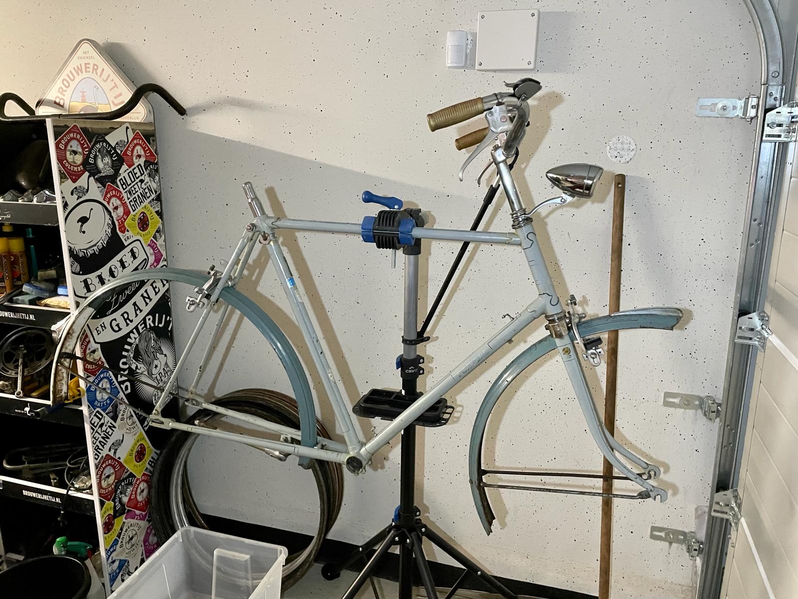 Uiteindelijk rest dan alleen nog het vinden van nieuwe remkabels voor de Weinmann remmen en dan kan deze fiets zijn eveneens fraaie vrouwelijke evenknie gaan vergezellen.