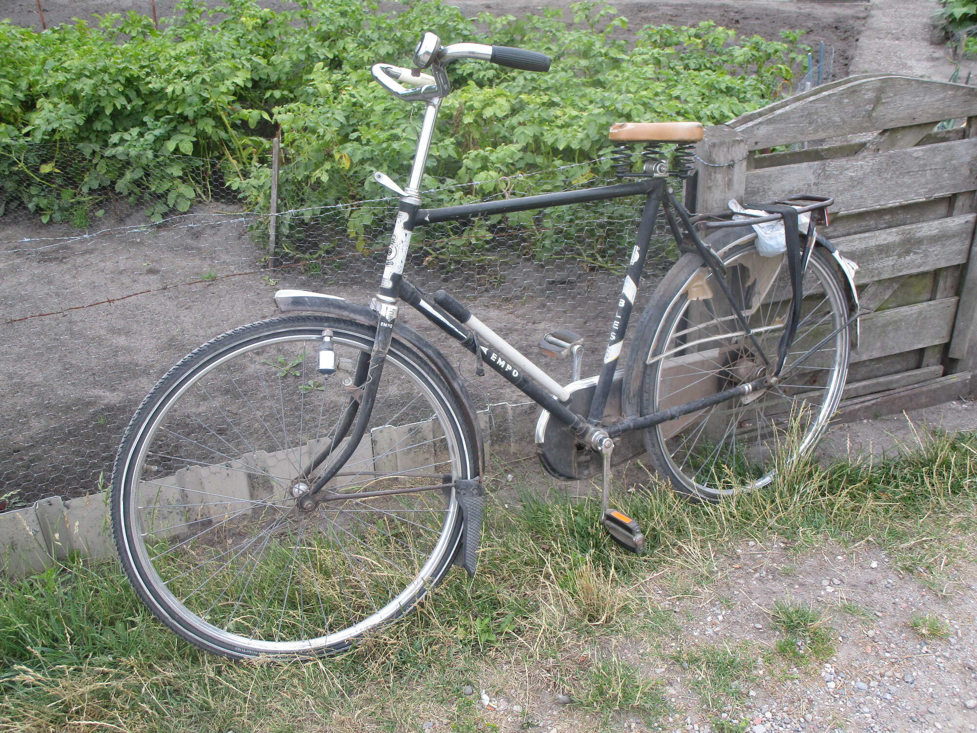 Deze foto werd gemaakt in juli 2019, net buiten mijn dorp. Een EMPO Bles, met een verweerd uiterlijk. Er zit een achterspatbord op met "U" van Union achter de spatbordboutjes. Het is niettemin al net zo verweerd. De eigenaar fietst er alleen mee naar zijn landje - hij was coloradokevers aan het vangen.
