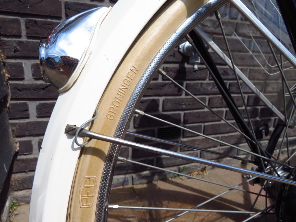 zoals gezegd in nieuwstaat. ik denk dat er nog geen 1000 km op is gefietst en dat de eigenaar 'm onder een kleedje heeft bewaard. onbeschadigde, soepele 'potdicht' binnenbanden, de binnenkant van de kettingkast zonder vuil, ketting en tandwielen als nieuw. spatlap en (vooral) de snelbinders wat last van uitdroging. logisch na 52 jaar.
