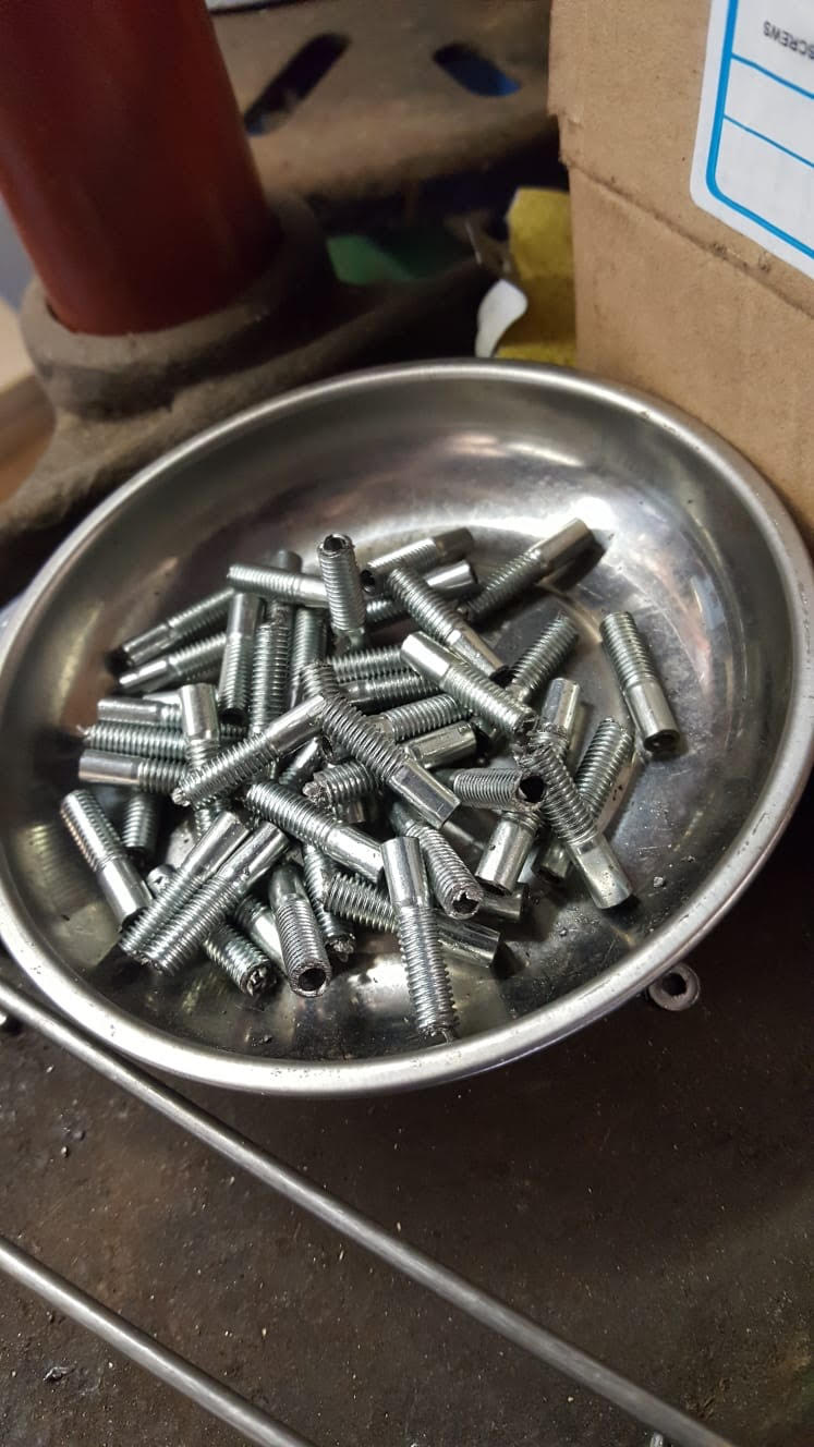Omdat de spaken taps toelopen heb ik het m5 boutje gebruikt die als draadbus gaan fungeren.
