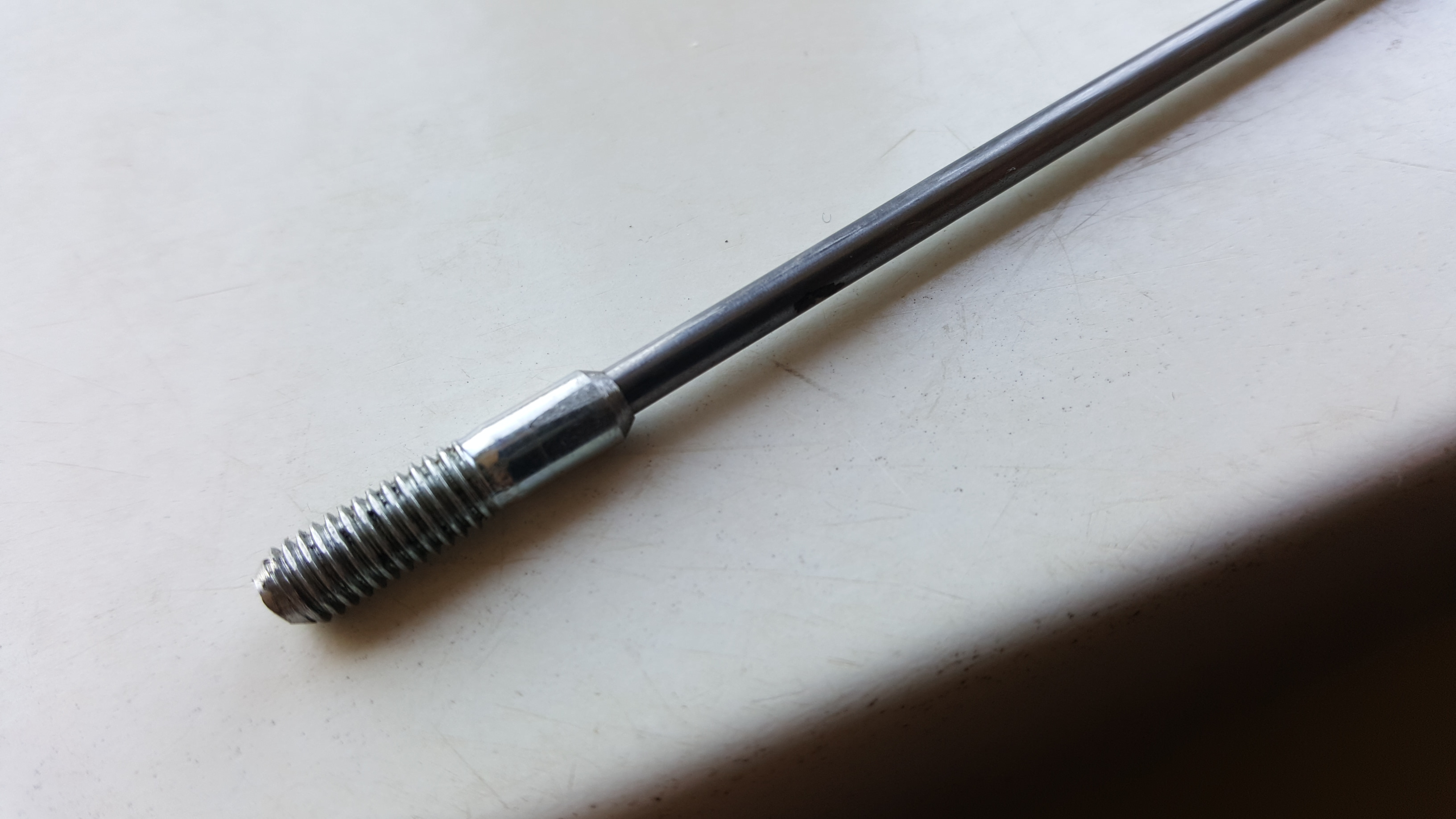 Hierna staf Ø 3mm door het boutje gestoken en daarna staf gefluxd en dichtgevloeid in het m5 boutje met zilversoldeer.