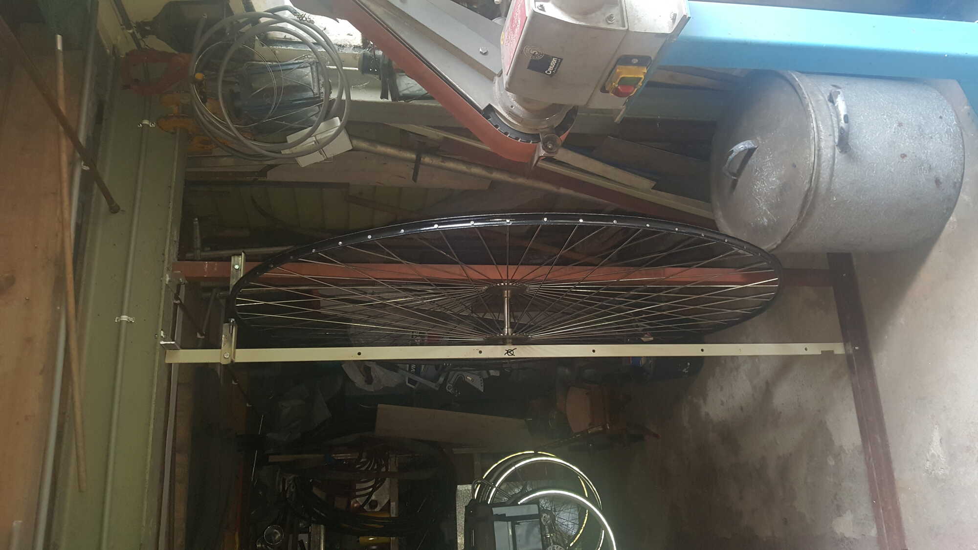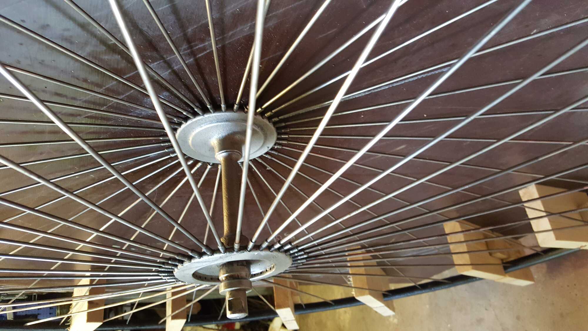 Na het vernikkelen is er een start gemaakt van twee houten mallen voor het in-spaken van beide wielen.