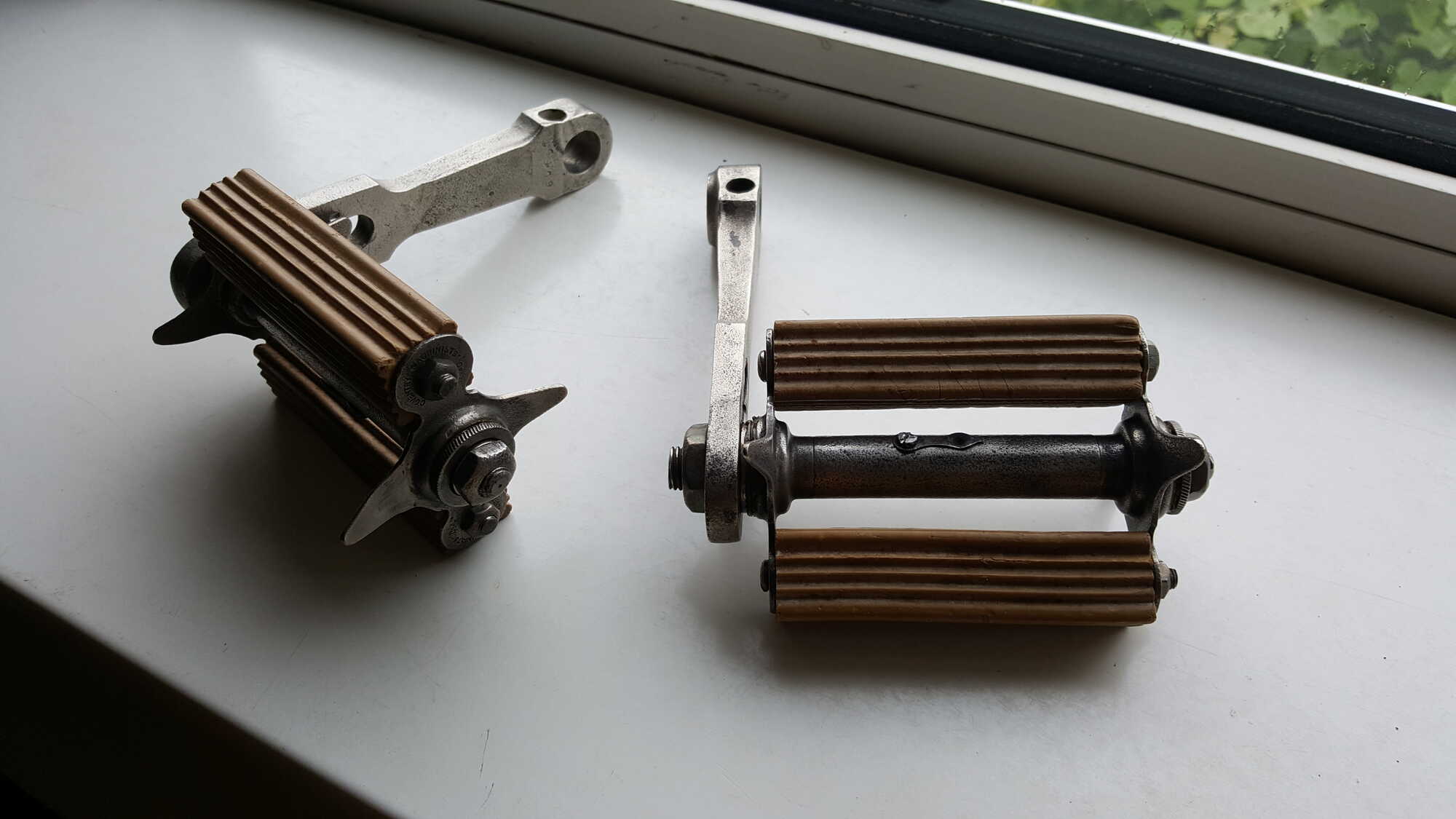 De cranks gericht en vernikkeld, de trappers gericht en vernikkeld.