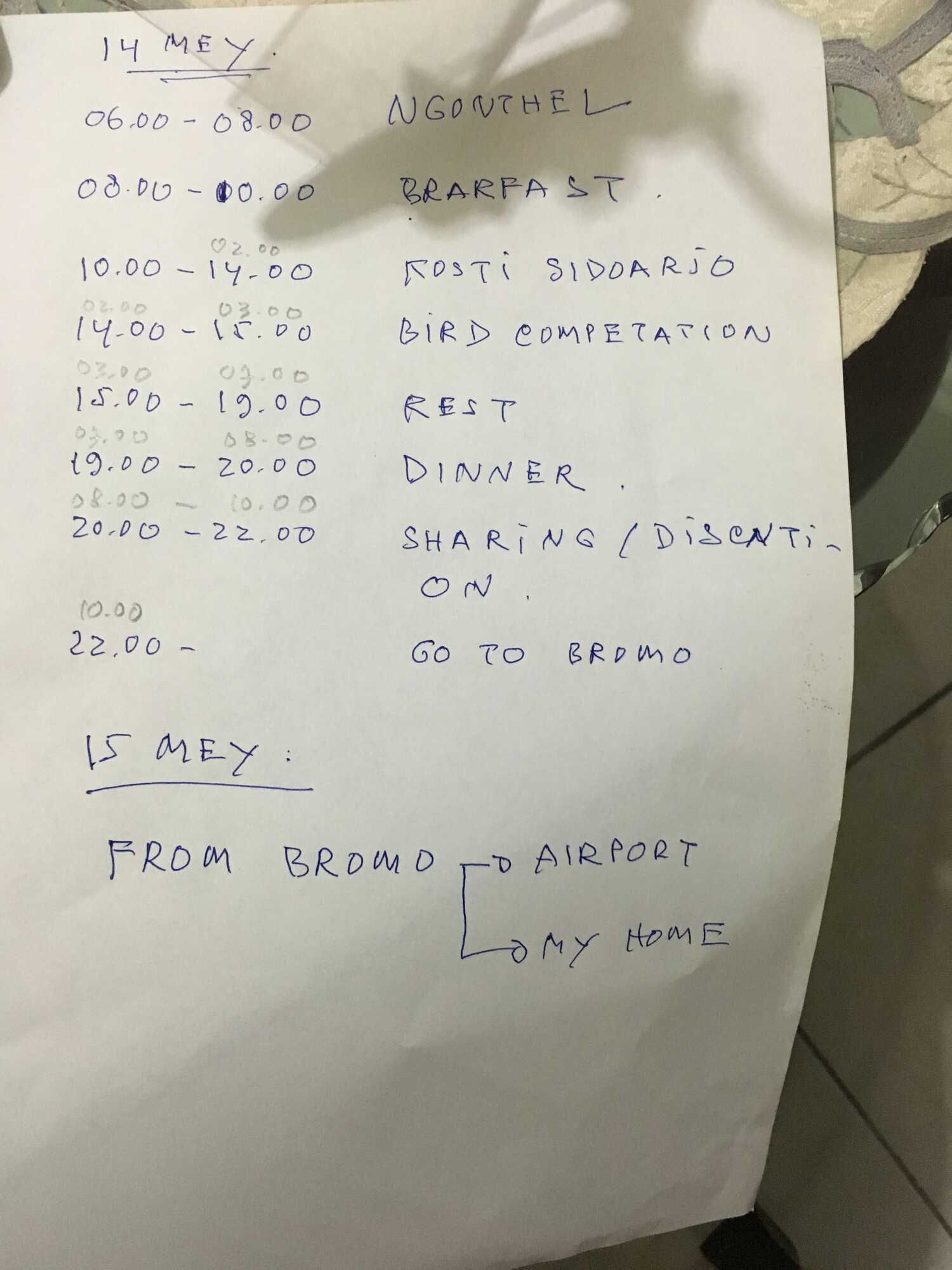 Na (eindelijk) een goede nachtrust was er voor mij een heel schema aan activiteiten bedacht waarop zelfs van 15.00 uur tot 19.00 uur een rust moment was ingelast omdat we die avond om 22.00 uur zouden vertrekken naar de Bromo Vulkaan.