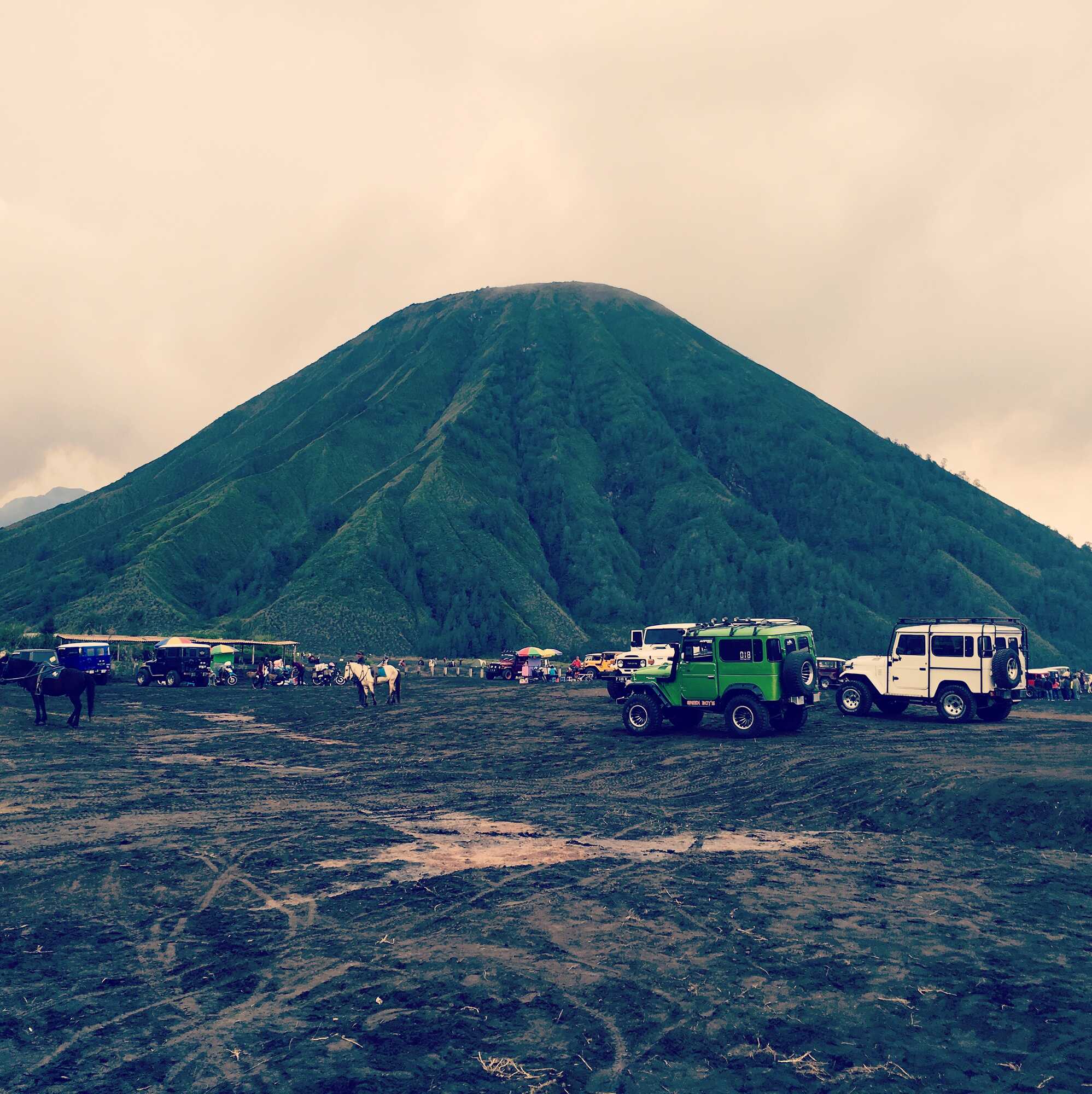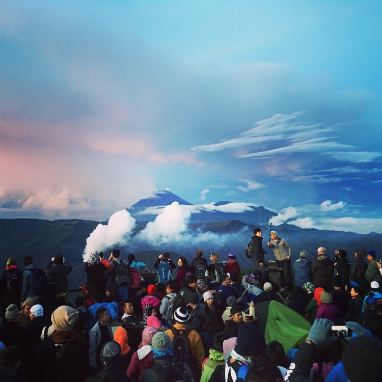 Toen we ’s avonds naar de Bromo vulkaan reden bleken we de aller eersten te zijn. Ik meen me te herinneren dat we er rond middernacht al waren terwijl het moment waarom dat was (de zonsopgang) pas rond een uur of 05.00 uur zou zijn. Heerlijk. En voor de Indonesiërs die zo vriendelijk waren geweest om met me mee te gaan nog erger want de 15 graden waren voor mij goed te doen maar ze zaten alle drie ondanks alle truien, mutsen en handschoenen te bibberen van de kou. Gelukkig bleek het uiteindelijk allemaal de moeite waard en was de zonsopgang prachtig.