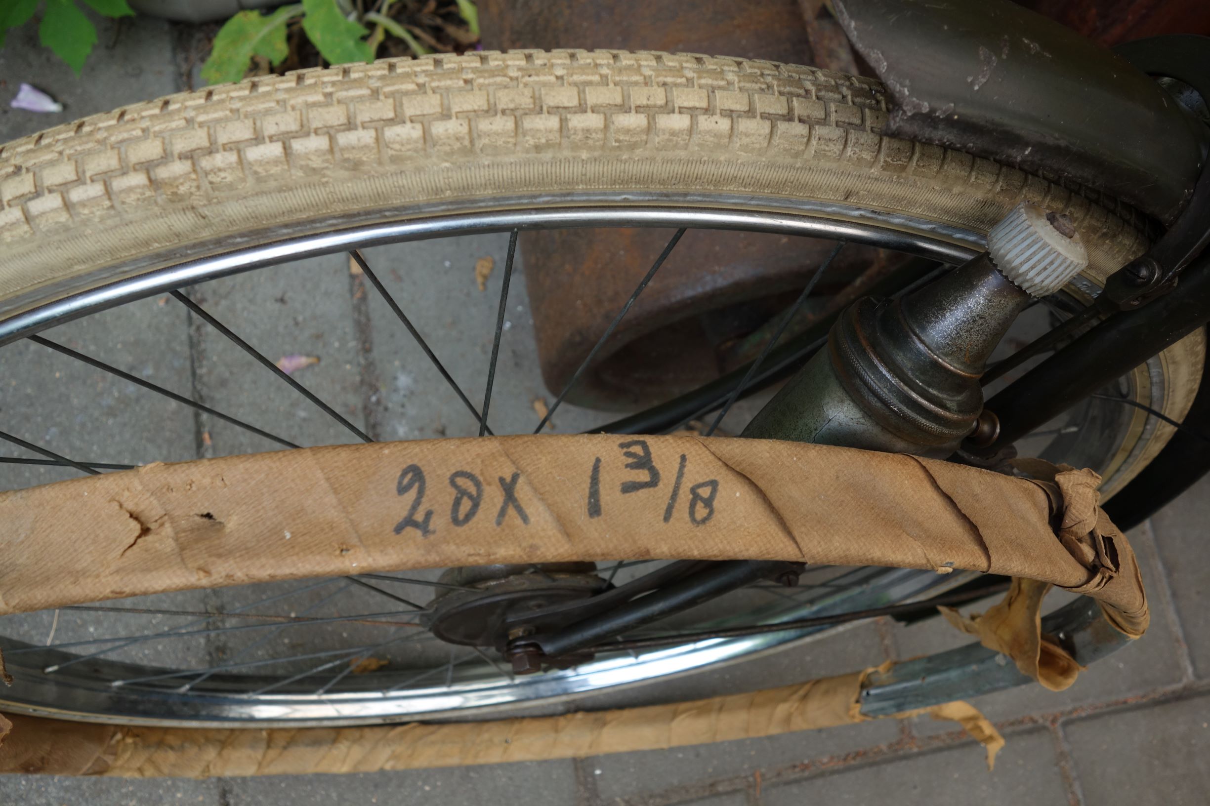 Ja een Franse trussframe dat je heb in Medemblik gezien. Toen had ik een 28x1 1/2 voorwiel erin. Inmiddels heb ik precies de juiste op eBay.fr op de kop getikt met nieuw oud Michelin band.