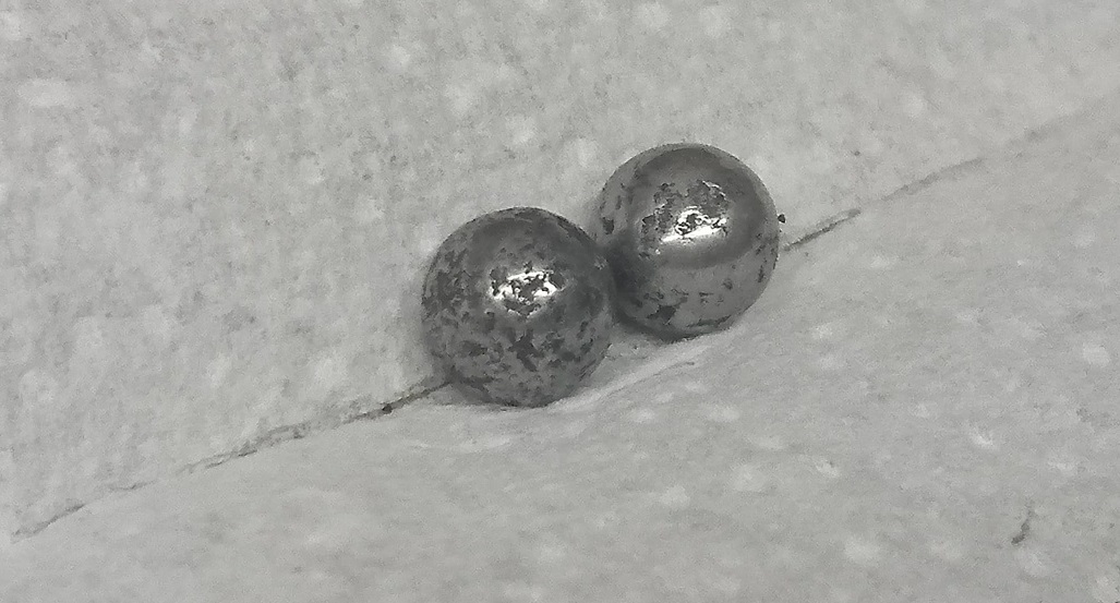 De achteras van deze tricycle heeft twee lagers. Ze zijn beide in redelijke staat, maar wel uitgelopen of uitgesleten, want aan de ene kant trof ik 7,4 mm kogels (flink vergaan, zie 1e foto) en aan de andere kant 7,9 mm (5/16 ") kogels. Ik ga de kogels maar gewoon vervangen en nieuw in het vet zetten. De lagers hebben verder geen ruwe plekken of putcorrosie, dus dat zal wel weer een tijdje meegaan. 7,4 mm kogels kan ik niet vinden, dus daar komt een metrische 7,5 mm in.