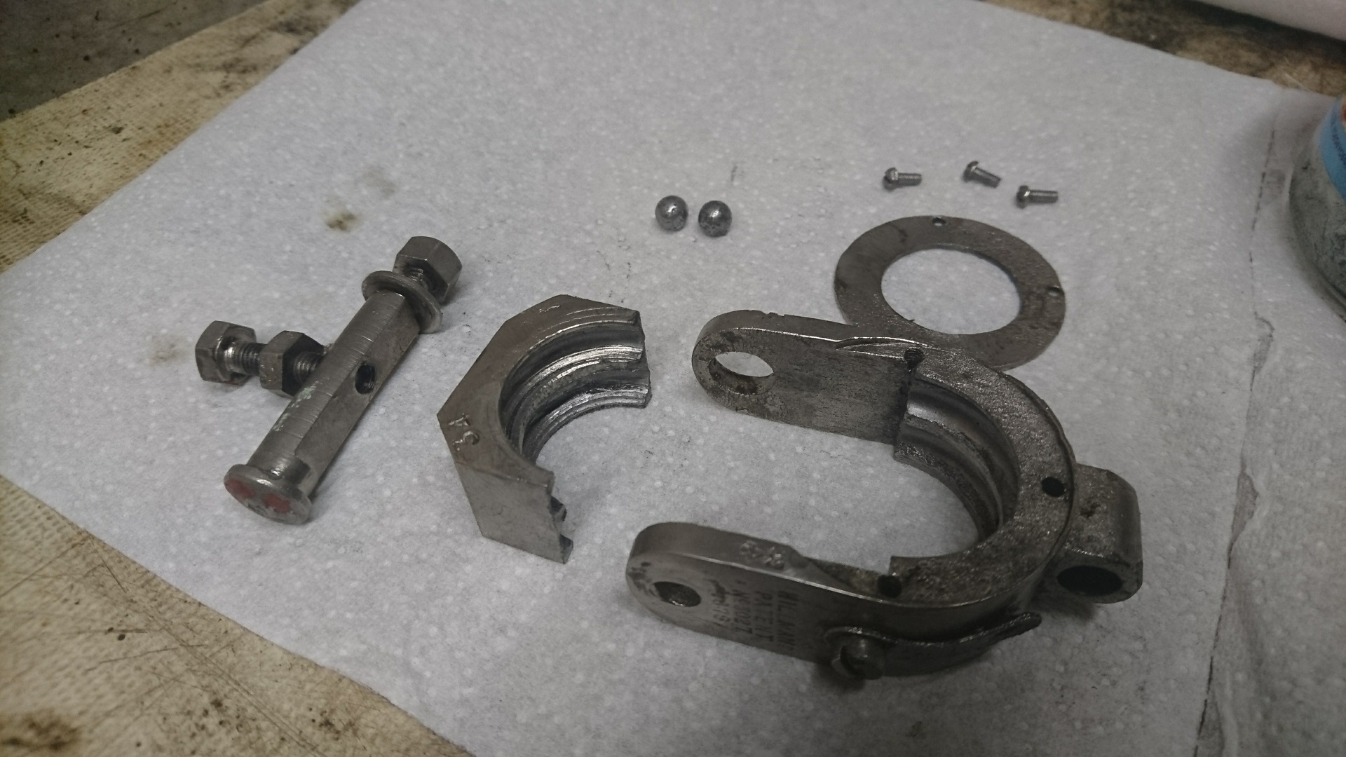 Het rare van het ontwerp is dat de baan van de kogels onderbroken wordt. Ze zijn af te stellen door het onderste deel in het bovenste, hoefijzervormige deel omhoog te schuiven. Met een boutje zit het geborgd. Je zou denken dat het niet werkt, maar dat doet het dus wel. Waarschijnlijk omdat de belasting op het lager toch vooral op het bovenste deel plaatsvindt.