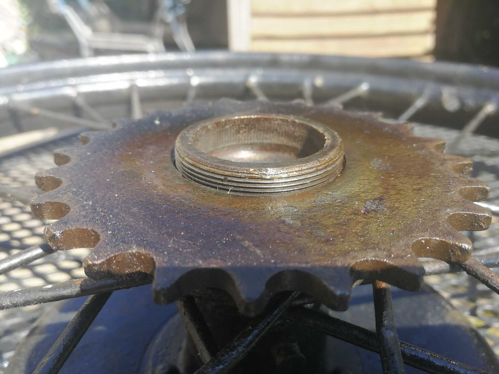 Ik heb de grootste moeite om het achtertandwiel te demonteren (linkse draad), hier zijn door de jaren natuurlijk de grootste krachten op gekomen, dus is erg moeilijk om die erg af te krijgen. Hebben jullie hiervoor nog tips?