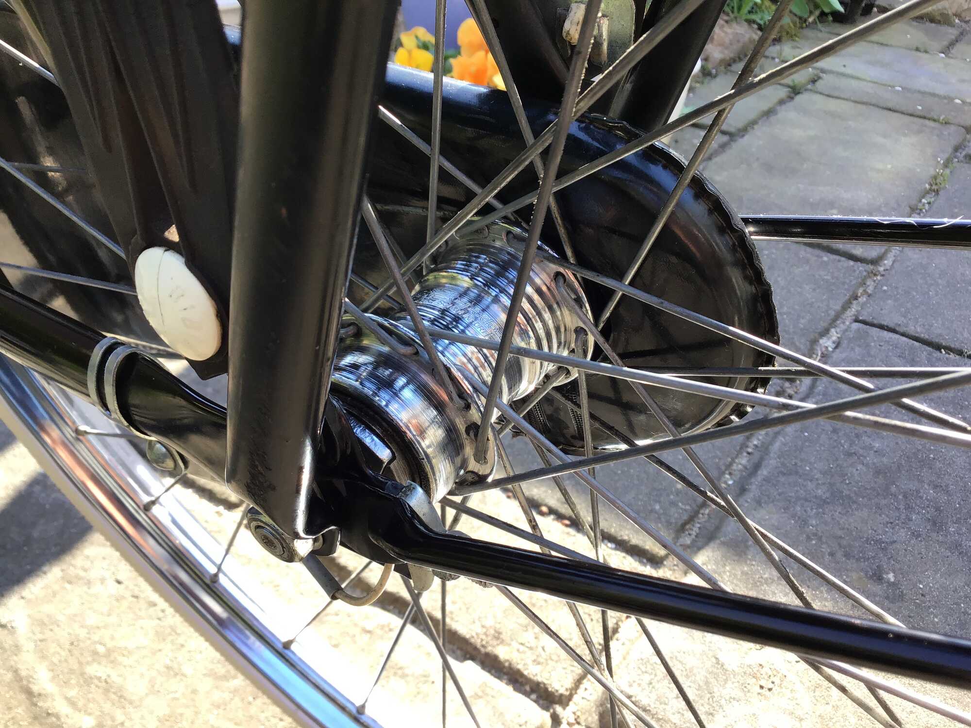 Ik heb de fiets schoongemaakt in de olie gezet en voorzien van nieuwe bandjes. Verder de jasbeschermer en kettingkast gerepareerd.