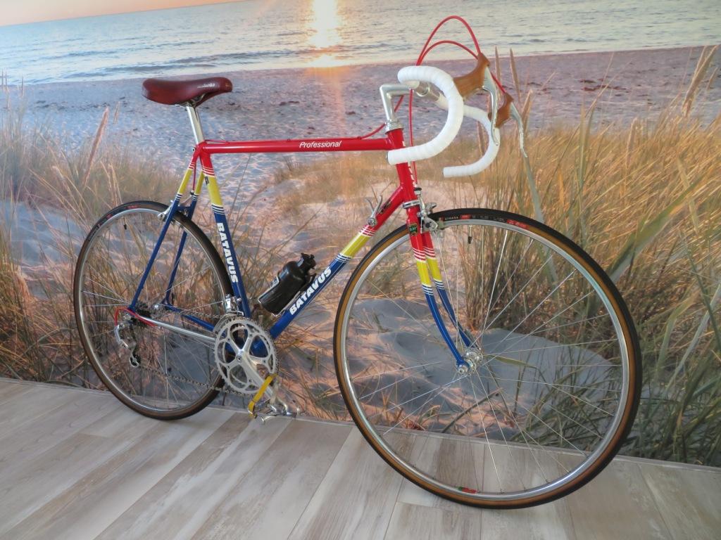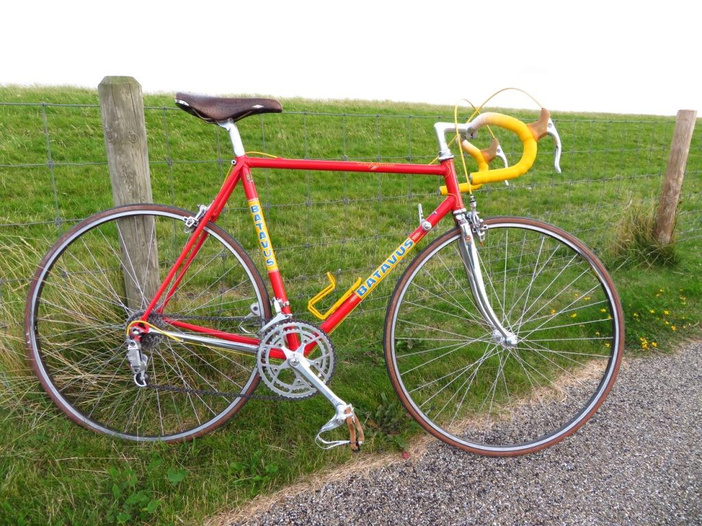 Hehe beetje traag tempo, maar hierbij wat foto's van mijn tweede Batavus Professional. Deze is van 1982; ik heb m een paar jaar geleden gekocht van de eerste eigenaar. Deze man ging gedurende enkele zomers naar het buitenland om te fietsen. Als herinnering aan de mooie ritten heeft de fiets 20 jaar in de woonkamer gehangen (!).
