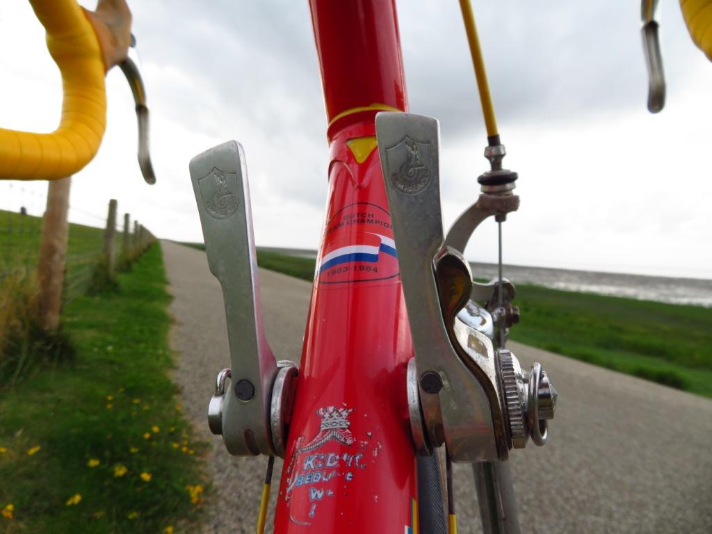 Wat betreft de datering/ingebruikname van deze fiets als geheel heb je dan verschillende opties. De fiets is gekocht in 1984, maar is een paar jaar later alweer van een nieuwe ronde onderdelen voorzien, of: het frame lag nog op de plank en is in 1987 afgemonteerd met de voor dat jaar gangbare moderne onderdelen. Ikzelf neig naar dat laatste, gezien de amper gebruikte staat van de fiets als geheel en gezien de verhalen over de laagdrempeligheid waarbij je bij de fabriek dingen naar wens kon samenstellen.