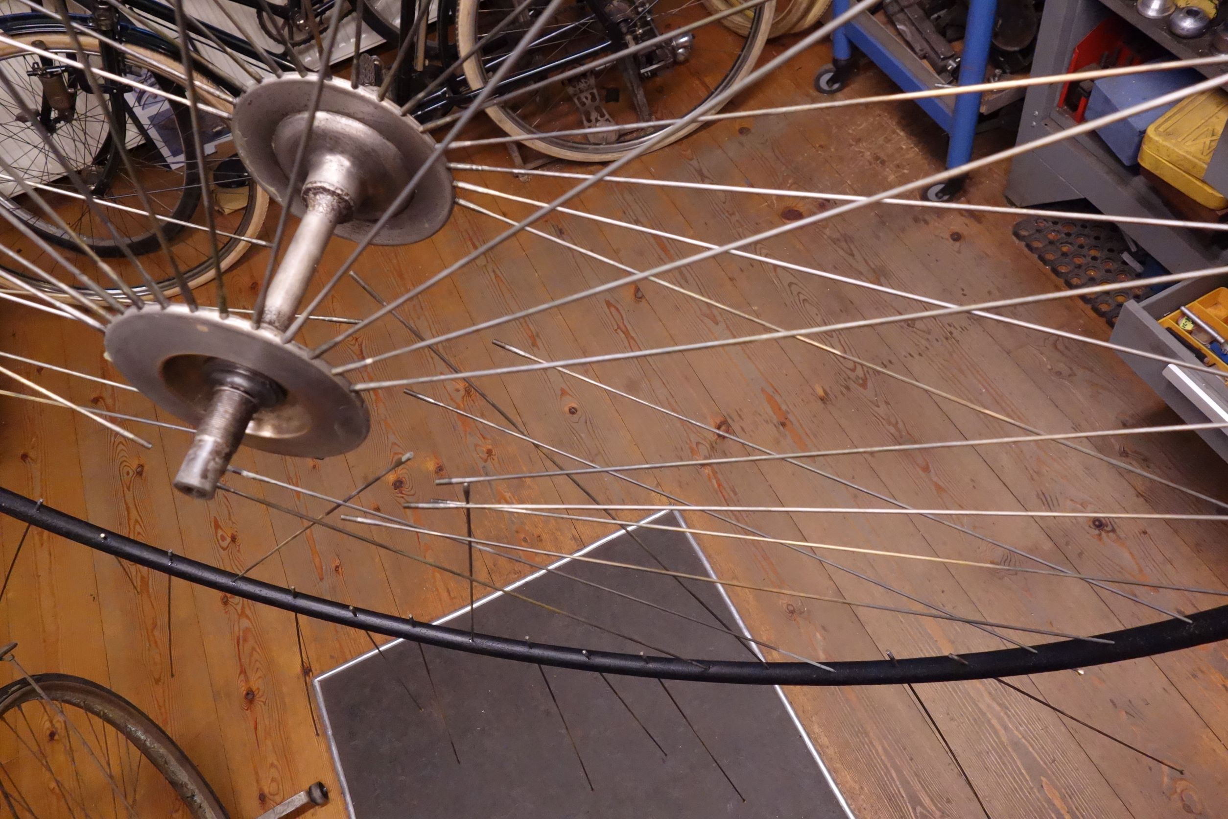 Uiteraard ging het niet in een keer goed en bleken de spaken net te lang. Ik heb er per spaak wat draad bij gesneden.