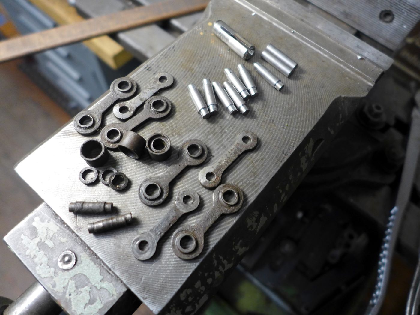 Ik heb alle koppen van de asjes weggeslepen waarmee de ketting in onderdelen uit elkaar viel. De binnen-schakels hebben twee rollen met daarin drie opvulbusjes per rol.