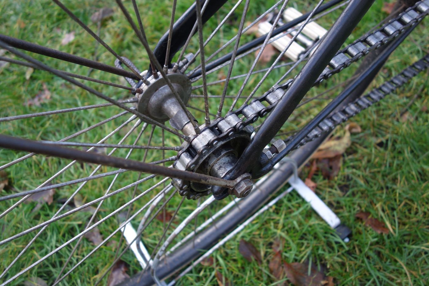 Op de fiets zit wel een ketting die ik eens gekregen heb maar die is eigenlijk te verroest en zit ook op een aantal schakels vast gerot.