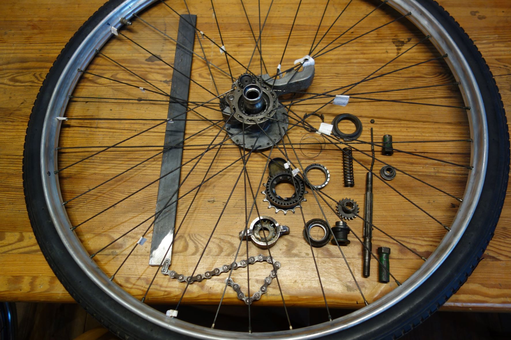 Noodzakelijk omdat vervanging bijna onmogelijk is. Het tandwieltje zit met linkse draad op de naaf en draait zich bij fietsen vast tegen de grote ring waar ik het gereedschap voor heb gebouwd. Zo'n tandwiel ga ik niet vinden. Daar moet je echt een Dursley Pedersen sloperij voor hebben.