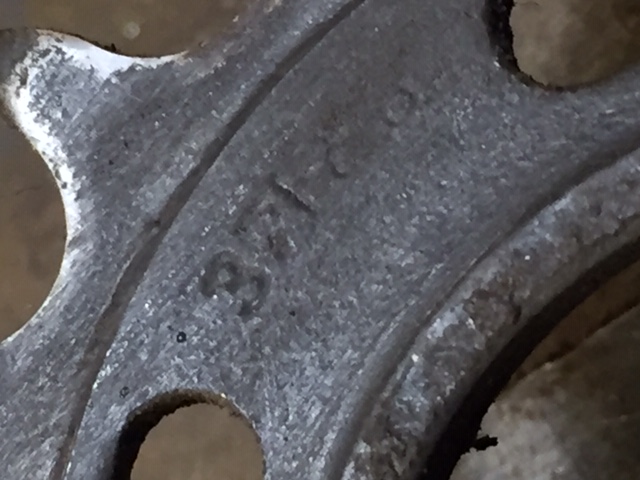 Het achtertandwiel ziet er uit alsof er nauwelijks mee gefietst is. Het jaartal staat er in.