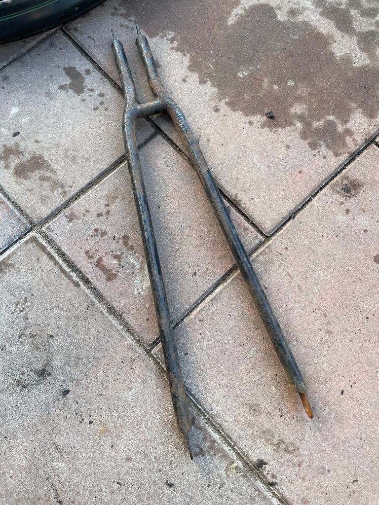 - De voorvork heeft een keertje een optater gehad en staat ietsje naar achteren