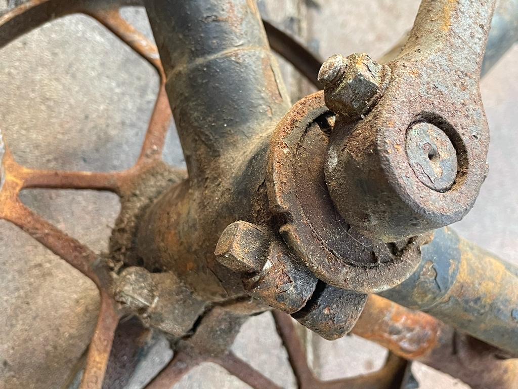 - De fiets heeft ook wat na-oorlogse kenmerken zoals de spatbordstang schroefjes voor en de Sturmey Archer naaf uit Mei 1945…
