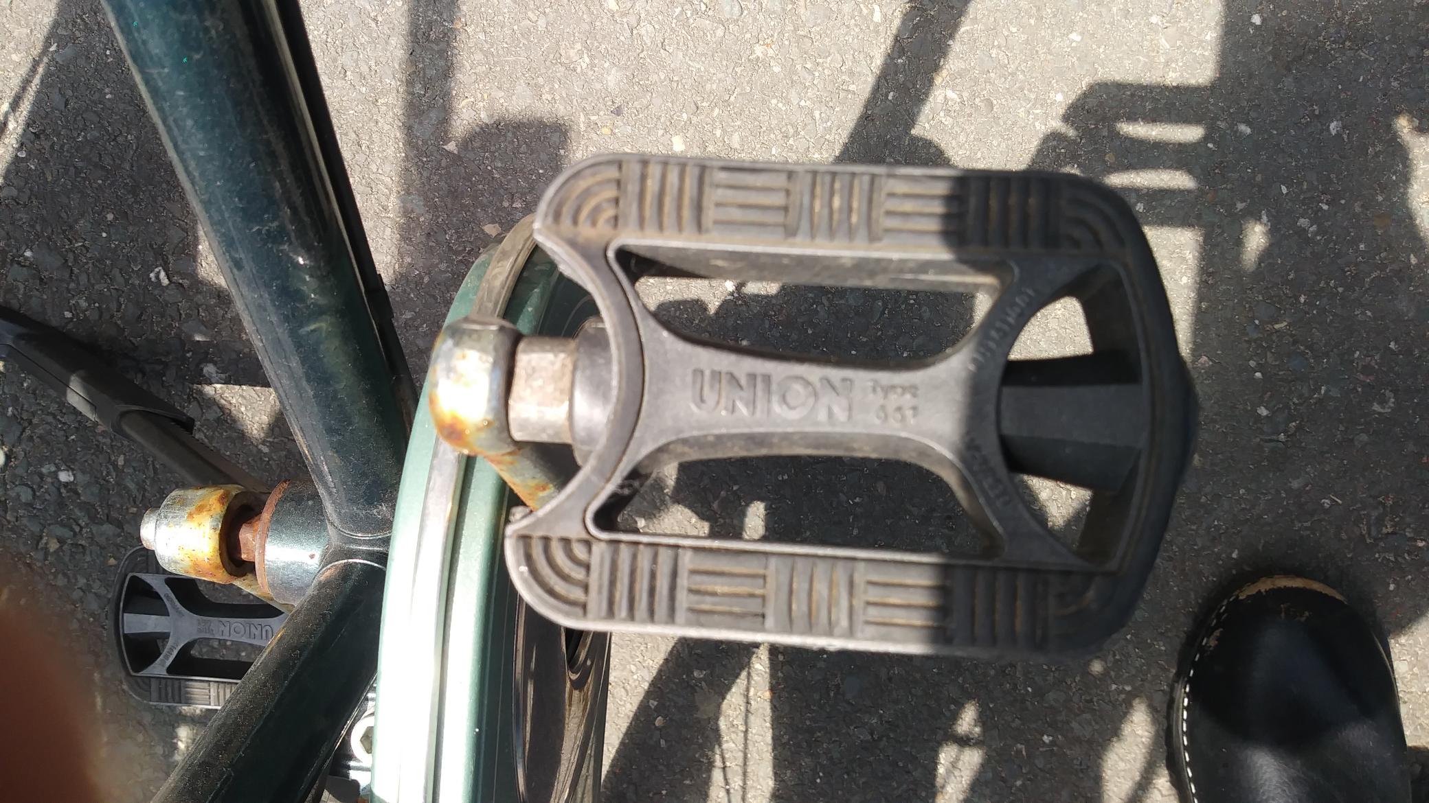 Vandaag zag ik op straat een fiets van het Belgische merk MGI, type Symfonie. Deze heeft dezelfde crank en bouten zoals ik zoek. Er zijn Union trappers gemonteerd