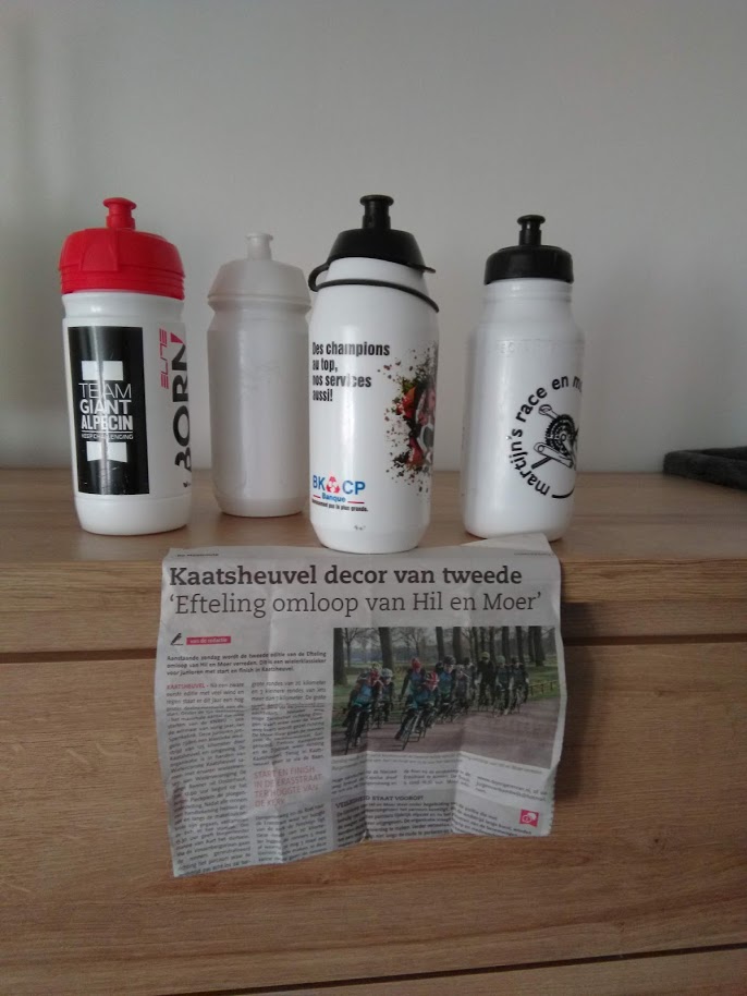 Ik spaar geen bidonnen (meer), maar als ze recht voor mijn voeten komen, raap ik ze wel op. Al is het maar om de rotzooi op te ruimen. En dan geef ik ze een plekje in mijn "mancave". Gezien mijn leeftijd doe ik er een stickertje op, om later nog na te kunnen vertellen waar en wanneer... :D Hier een "buit" van september 2019....