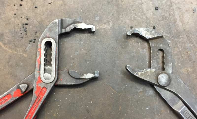Prachtig idee zo'n oude waterpomptang verbouwen. Bij de lokale vlooienmarkt ligt er altijd wel een afgeklovene in één of andere bak je lief aan te kijken voor een euro. De fietspecifieke tangen voor lockrings zijn er van bijvoorbeeld Hozan en VAR, maar stiekum heb ik het idee dat een omgebouwde waterpomptang beter werkt en hij heeft meer stelmogelijkheid, zodat je hem ook kunt gebruiken voor bijv. de borgmoer van een Torpedo-remnaaf.