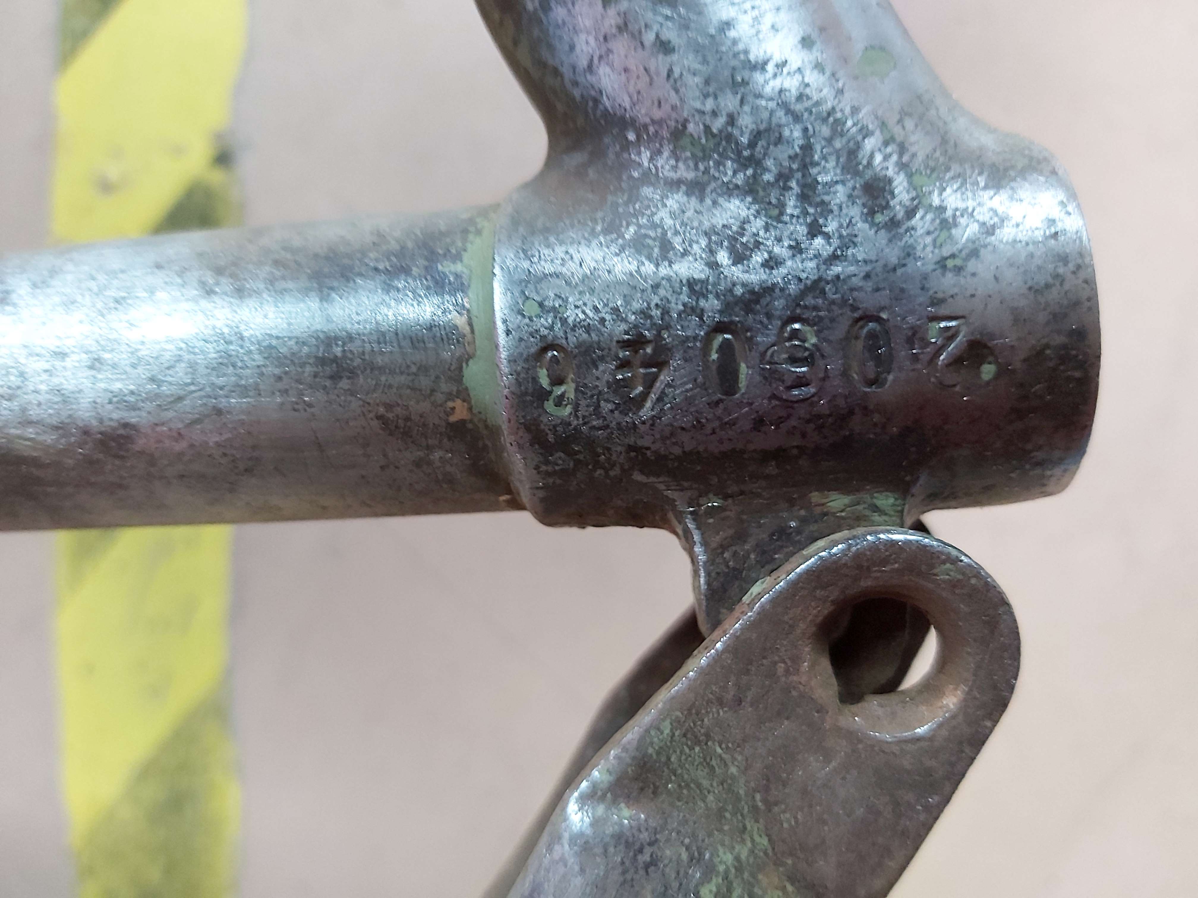 De vermoede scheur in de bracketpot heb ik niet terug kunnen vinden, dus dat is positief. Deze fiets heeft in zijn leven echter wel ongenadig op zijn donder gehad gezien de deukjes en de verbogen stuurstang, maar daar heb ik respect voor en dat motiveert mij alleen maar meer om er nog een goed bruikbaar bejaard vehikel van te maken.