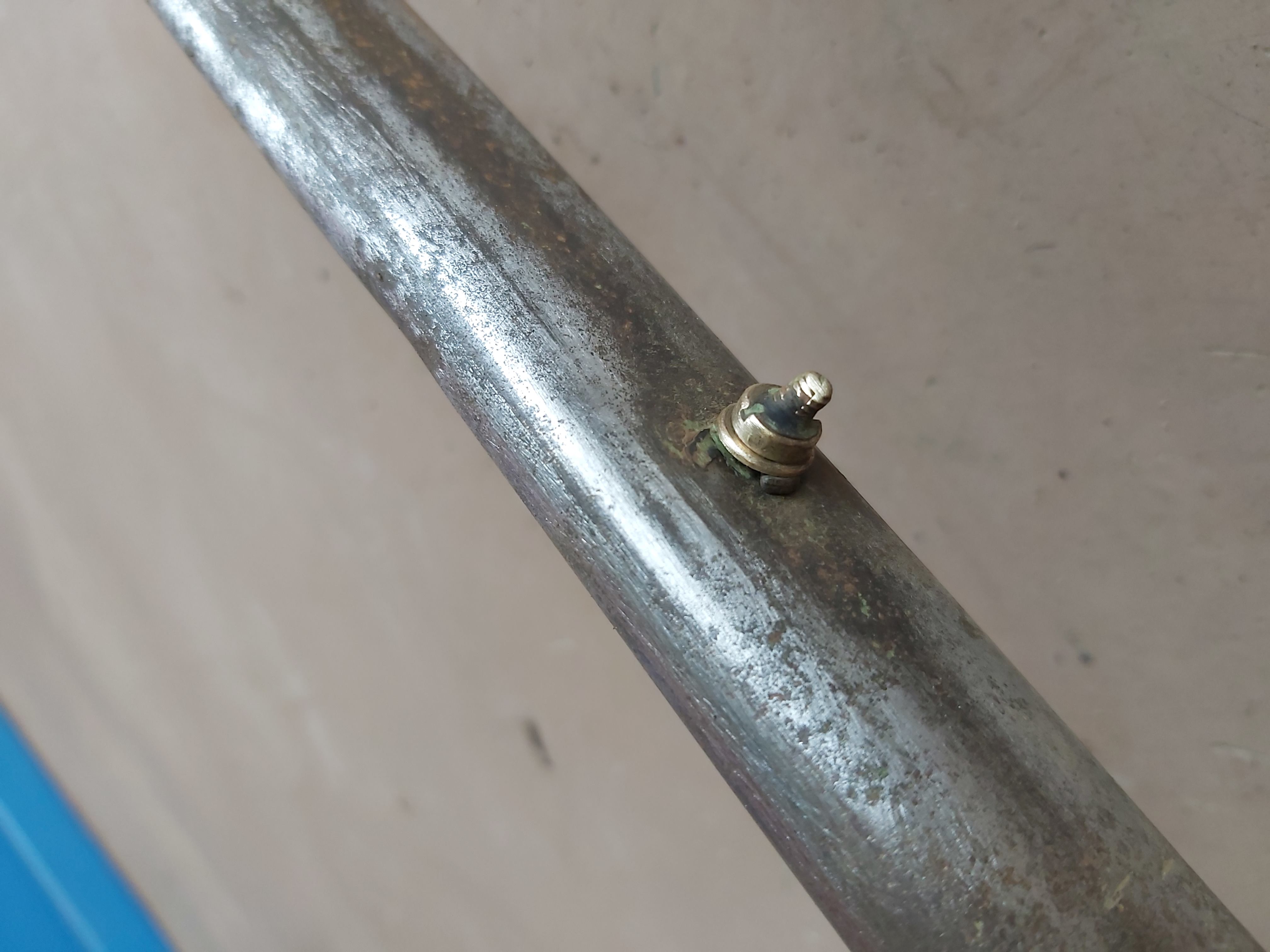 Het stukje schroefdraad is een ‘draadventiel’. In het frame zit een snoertje ten behoeve van het achterlicht. Als het snoertje er nog in zit kun je dat zien in het brackethuis.