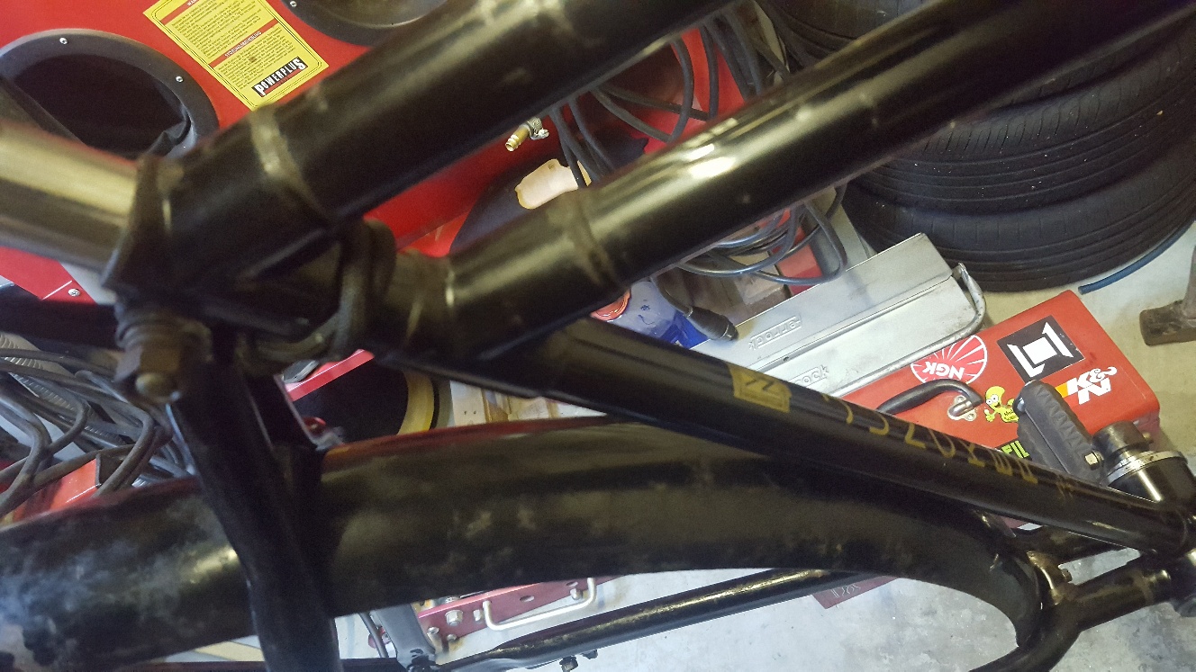 Die is geheel opnieuw verchroomd en gepoedercoat. Dat is de fiets van Jelle zeker niet, gezien de originele transfers er nog op staan (bij de fiets van Davy dus niet meer). Het lijkt er dus echt op dat deze twee fietsen hetzelfde framenummer dragen.