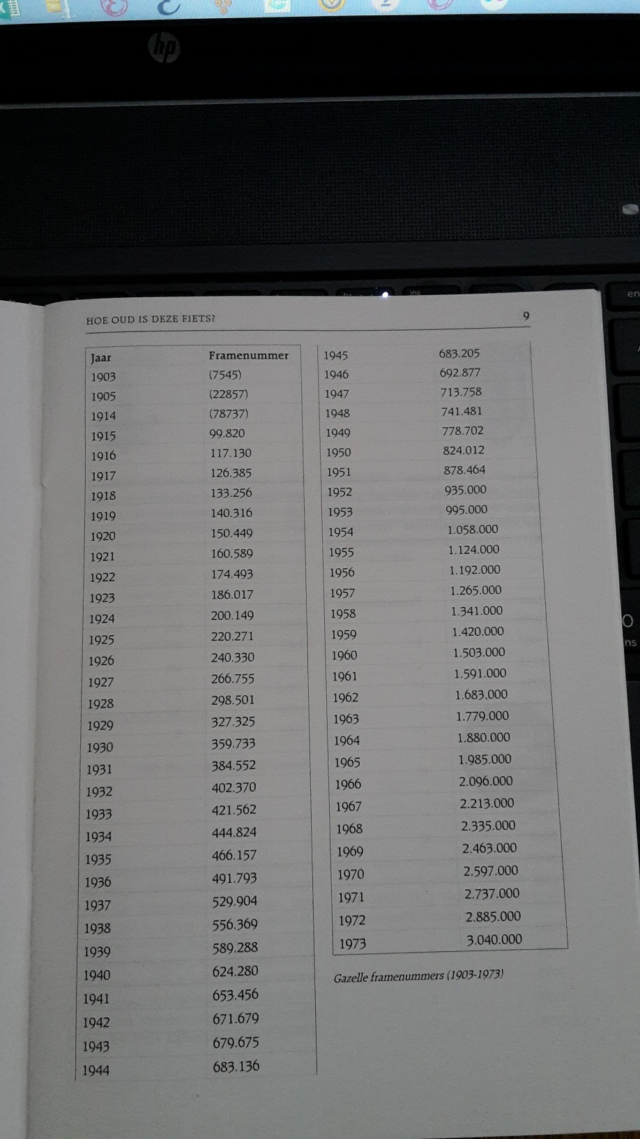 wat datering betreft: hier een overzicht van Gazelle frame nummers met bouwjaar.
