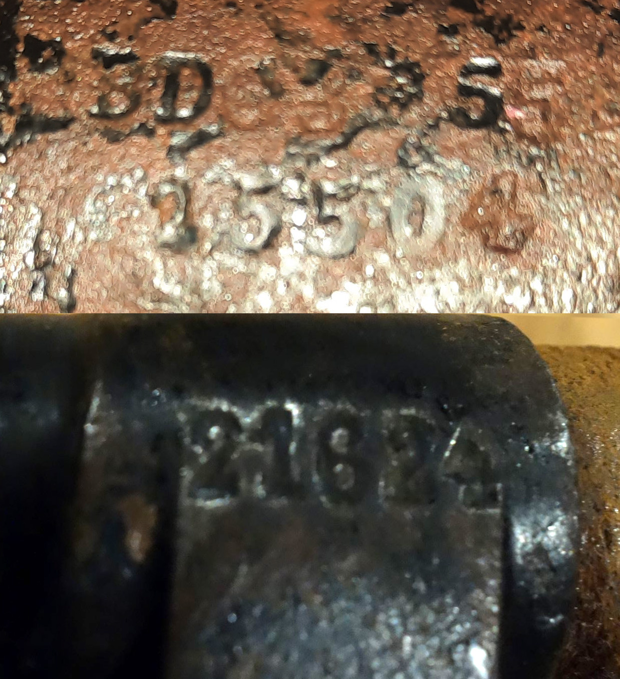 Wordt er niet wat erg makkelijk geconcludeerd dat het framenummer met een 1 begint? Hieronder het nummer en ter vergelijking nog een ander Fongers-nummer waarin de 1 en de 2 mooi naast elkaar staan. Ik zie er geen 1 in maar 25504. Wat dan wel - zoals eerder terecht door iemand aangegeven - de vraag oproept waarom dit nummer nog op de balhoofdlug staat en niet op de zadellug. Daar heb ik geen goede verklaring voor.