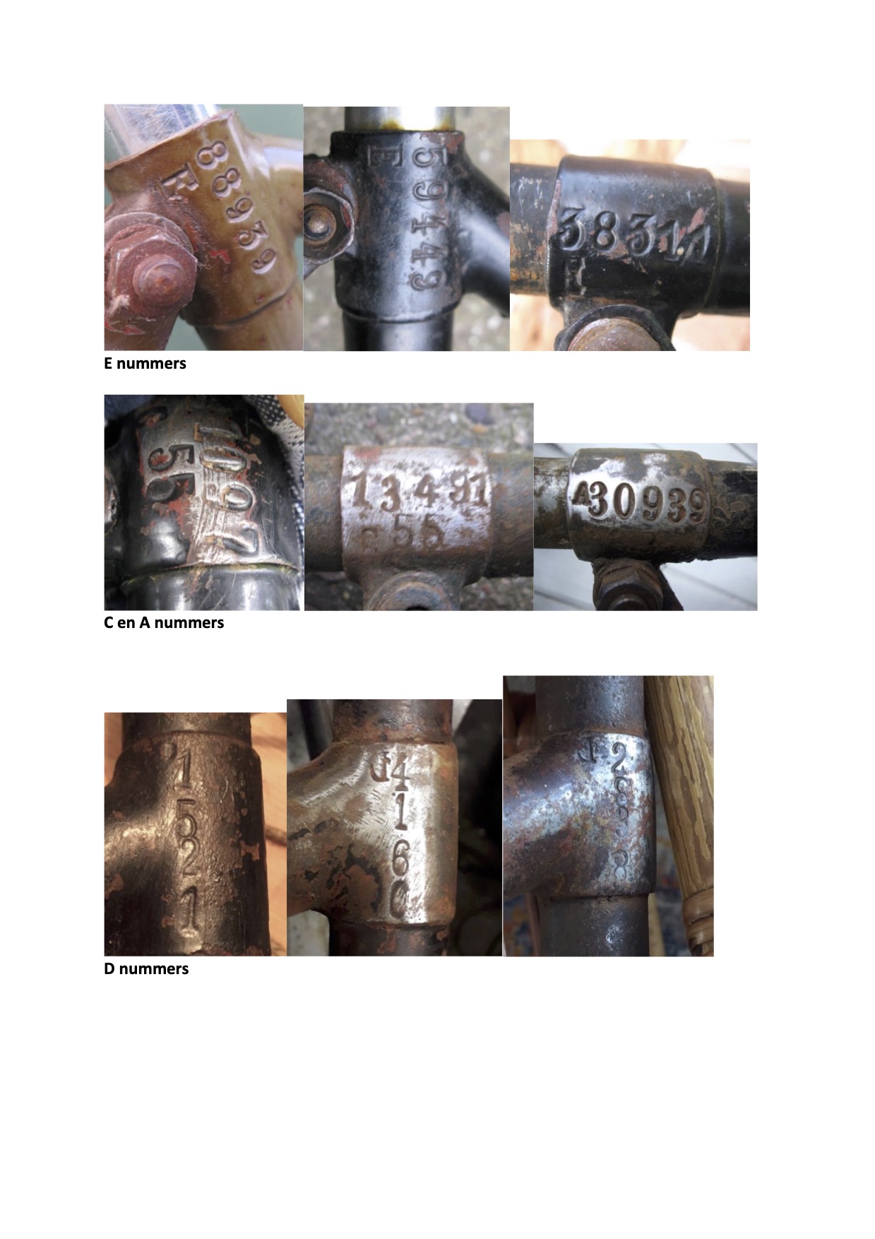 D nummers: ik heb nog nooit Burgers fietsen met een D nummer gezien. maar wie weet ...... ik ken ook geen Burgers transportfietsen van voor de oorlog. wel een van na de oorlog maar die heeft net als de tourfietsen een H in het nummer. Ik ben er altijd van uitgegaan dat Burgers letters oversloeg om wellicht de indruk te wekken dat ze meer fietsen maakten dan in werkelijkheid het geval was.