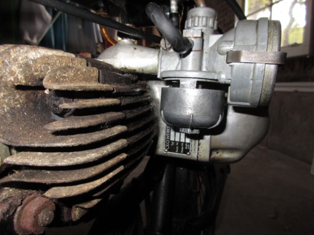 Bij een bromfiets/motor liefhebber bij mijn uit de buurt lagen gelukkig nog meerdere Bing carburateurtjes op de plank waar ik een vlotterbakje van kon gebruiken. Ondanks dat het ogenschijnlijk het model was dat ik nodig had bleek deze toch niet de juiste maat te hebben. Later vond ik een bijpassend bakje waardoor ik de maatverschillen kon vaststellen. Voordat ik het originele bakje had, heb ik mij moeten behelpen met een noodoplossing. Uit een stuk aluminium heb ik een getrapte ring gedraaid die de "missing link" moest zijn voor het niet passende deel. Door er een ruimte in te laten voor een O-ring kon ik het bakje middels de tussenring passend aan laten sluiten op de carburateur. Het motortje liep er prima om.