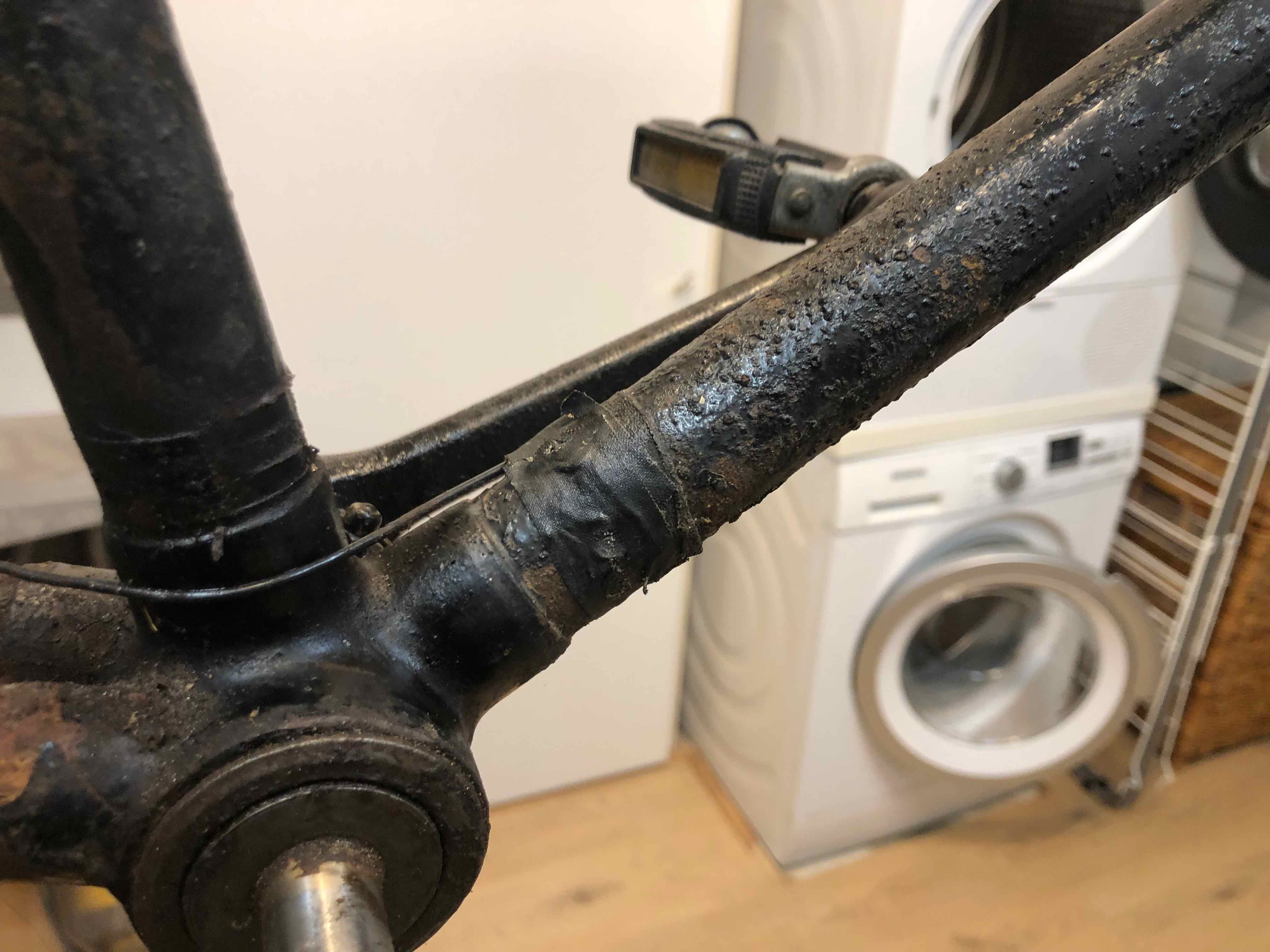 Ze is nagekeken, nieuw vet in de lagers, in de Owatrol met zwart pigment gezet, voorzien van passende oude spatborden, net-rokbeschermers en (bij de aanwezige koplamp) passende dynamo en achterlicht. Alles eerder dit jaar gescoord in Berlicum. En voorzien van oude Vredestein spekbanden.