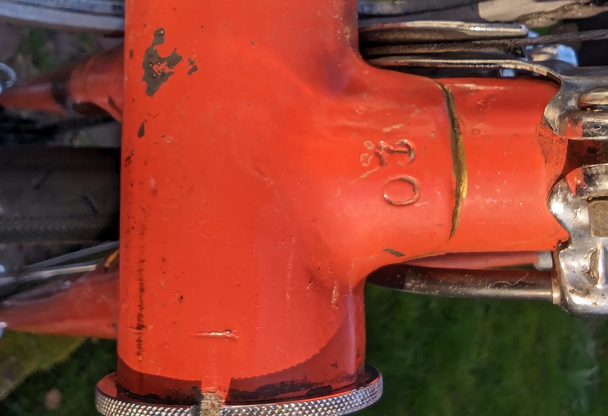 een twee-zijferig en helaas niet echt duidelijk framenummer. De Nervex inslagen staan al in de bracketlug voordat het een fiets wordt/werd. :D Het is inderdaad wel de plek waar de framenummers werden ingeslagen door Jasper Bouma...