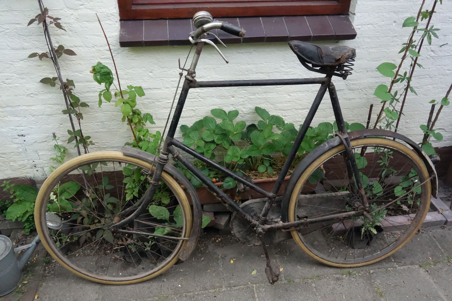 75 cm is een reuzenfiets! Mooie fiets en t is eens wat anders dan de rest. De oude zinken gieter staat er mooi bij.Zou voor mij ook stoppen bij de stoeprand worden om af te stappen 🤣