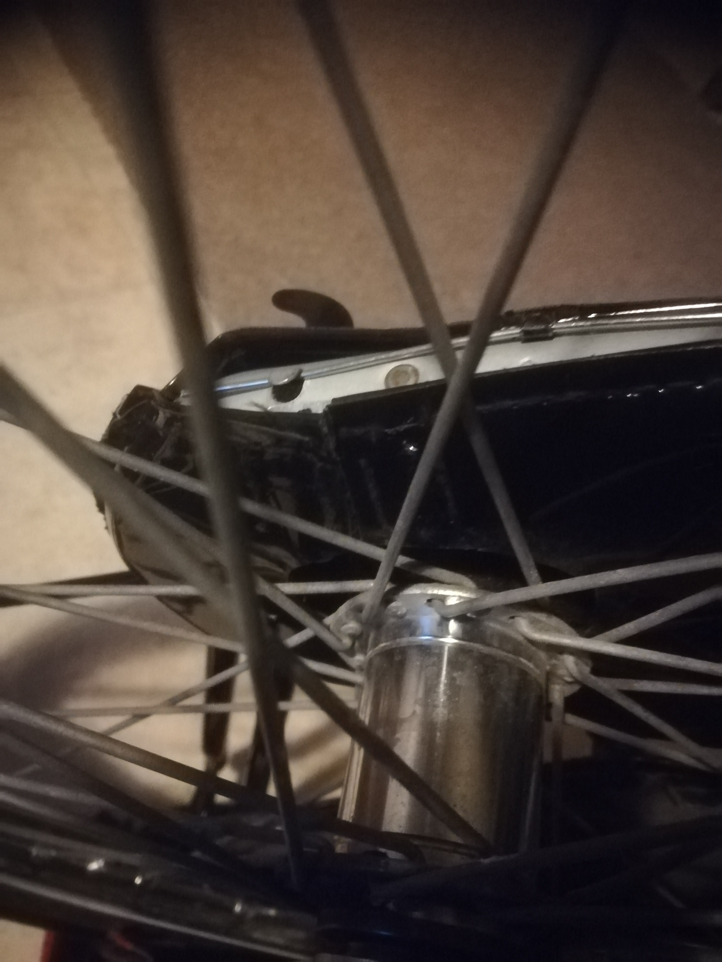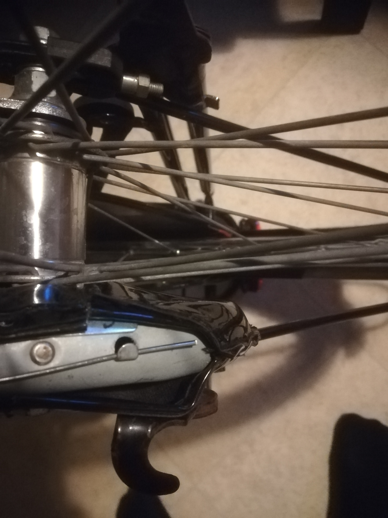 ik vraag op aan de fietsenmaker .of de voorspatbord niet beetje verbogen is . ik heb wel te veel aan de schroeven proberen de draaien . te veel op de voorspatbord leun met me arm. dan niet beetje verbogen is.