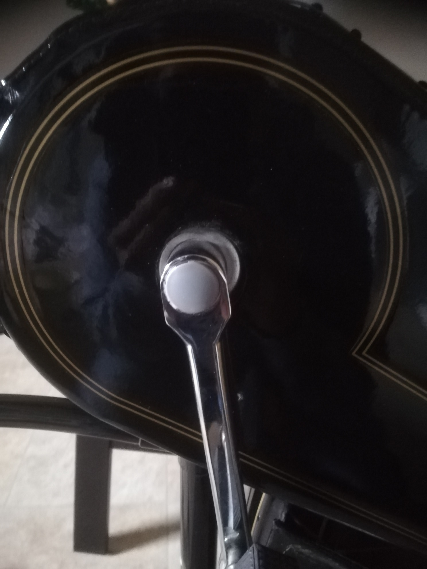 Ik hebt het geprobeerd. De knoopjes losgemaakt en de ijzerdraad er uitgehaaLd. Onderkant van de kettingkast lakdoek. Alleen krijg ik het vorkje er niet in.