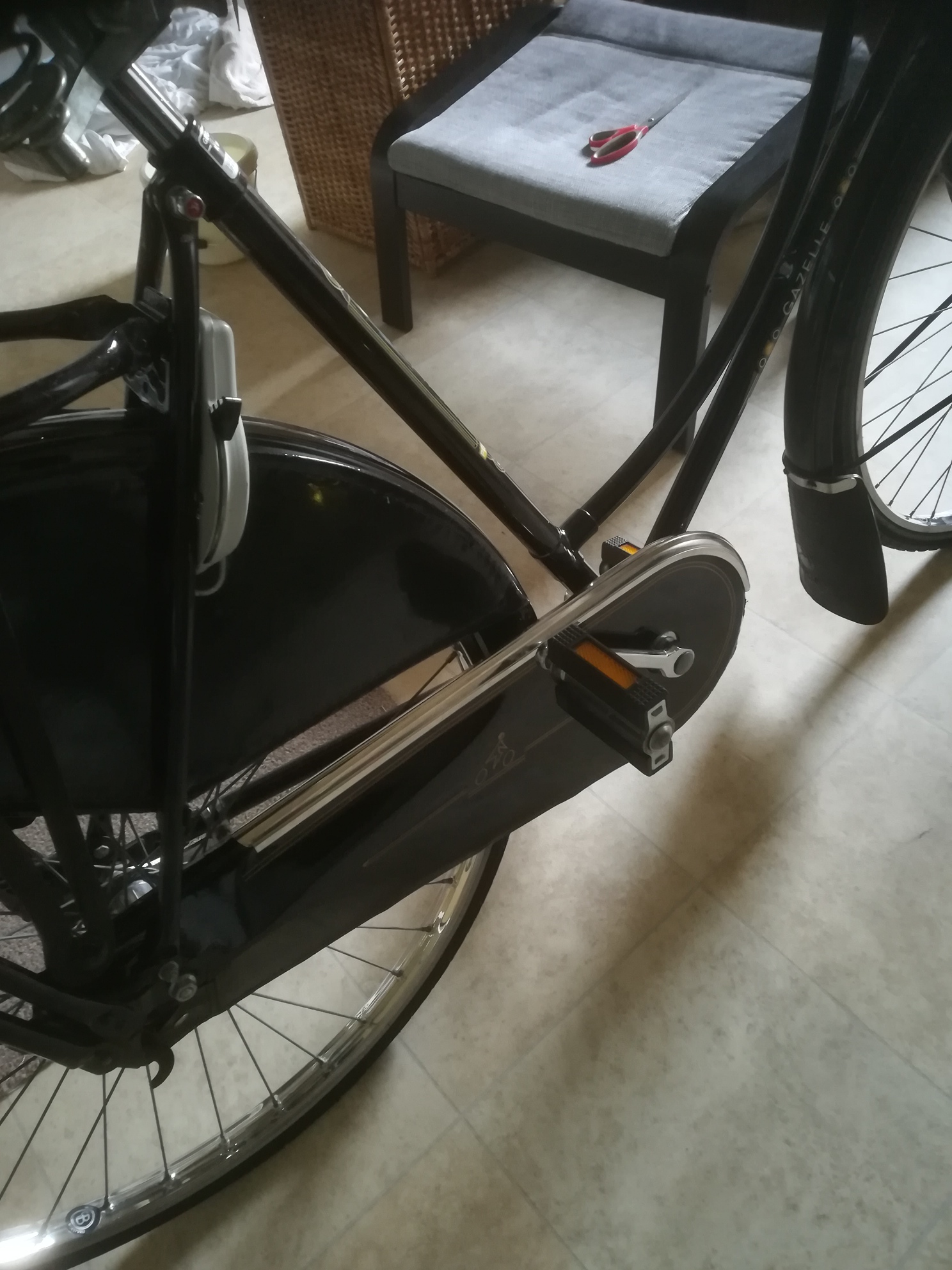 nu nog een ,,bumpertje ,, van kunststof over de beugel van je achterspatbord [ze zijn geribbeld en van zwart kunststof en kun je er zo op klikken ter voorkoming van beschadiging van de lak van je beugel]