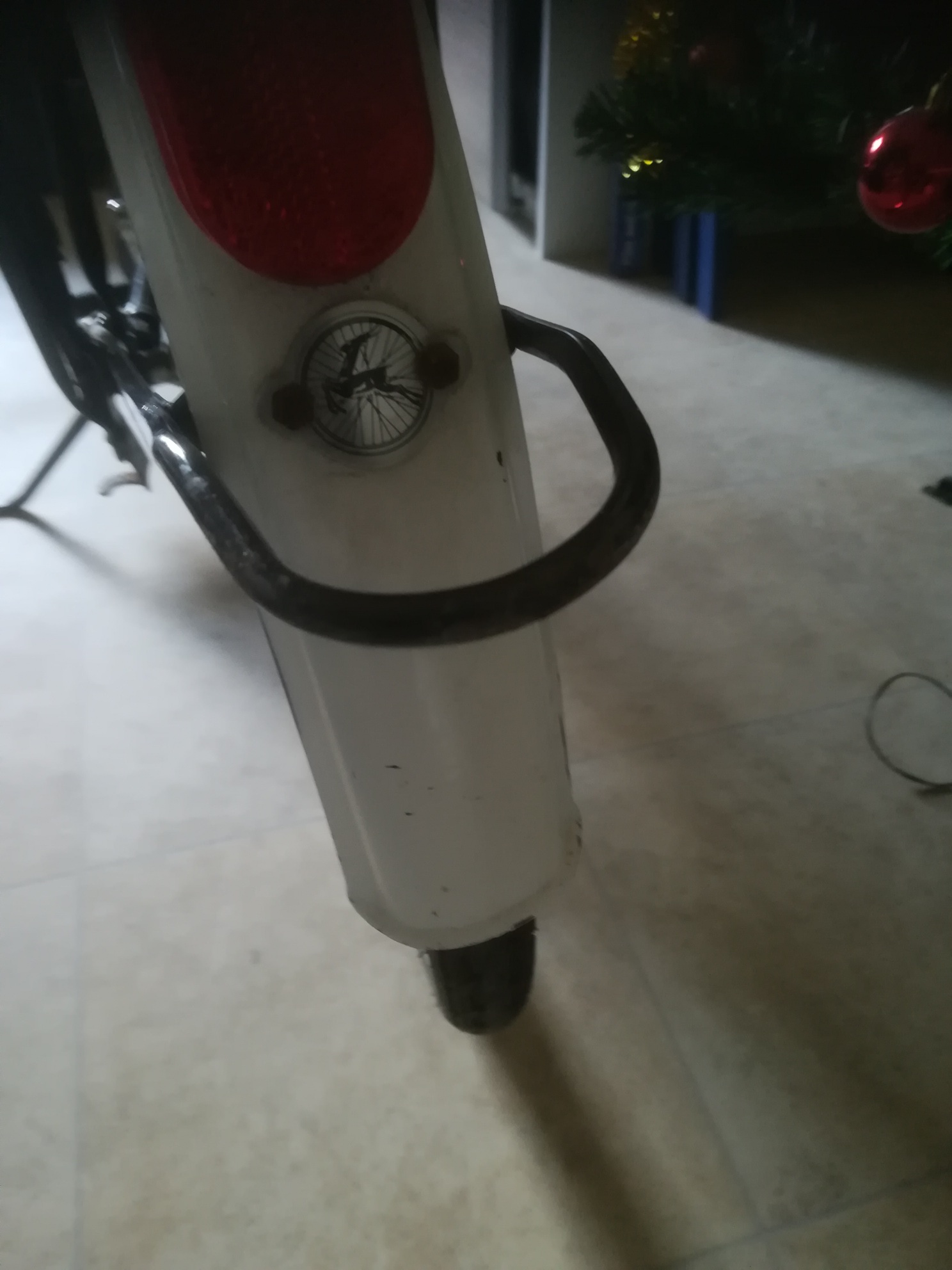 De achterkant van de opoefiets zit witte vlekken op.
