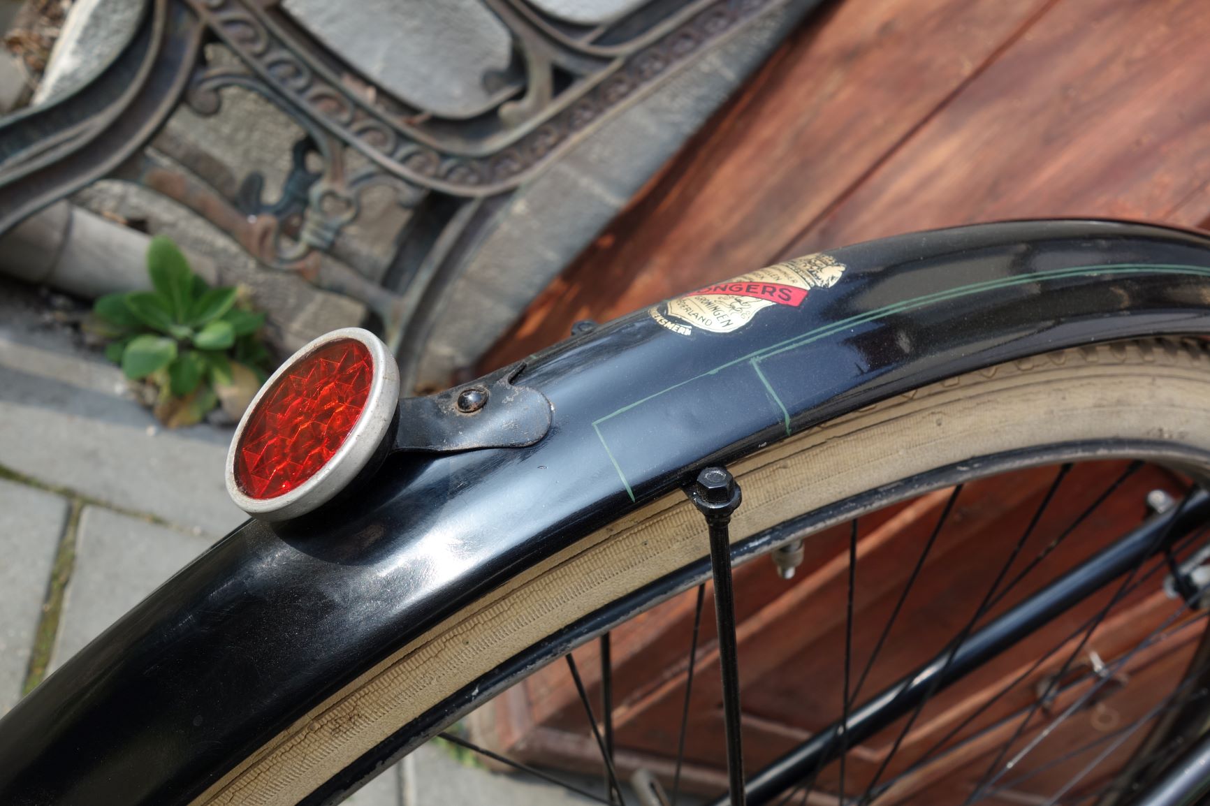 Ik heb uiteraard een reflector op het achterspatbord gezet. Kort geleden eindelijk eens kunnen lezen in Het rijwiel wanneer die verplicht werd en daarmee hoort het op deze fiets zeker er op te zitten.