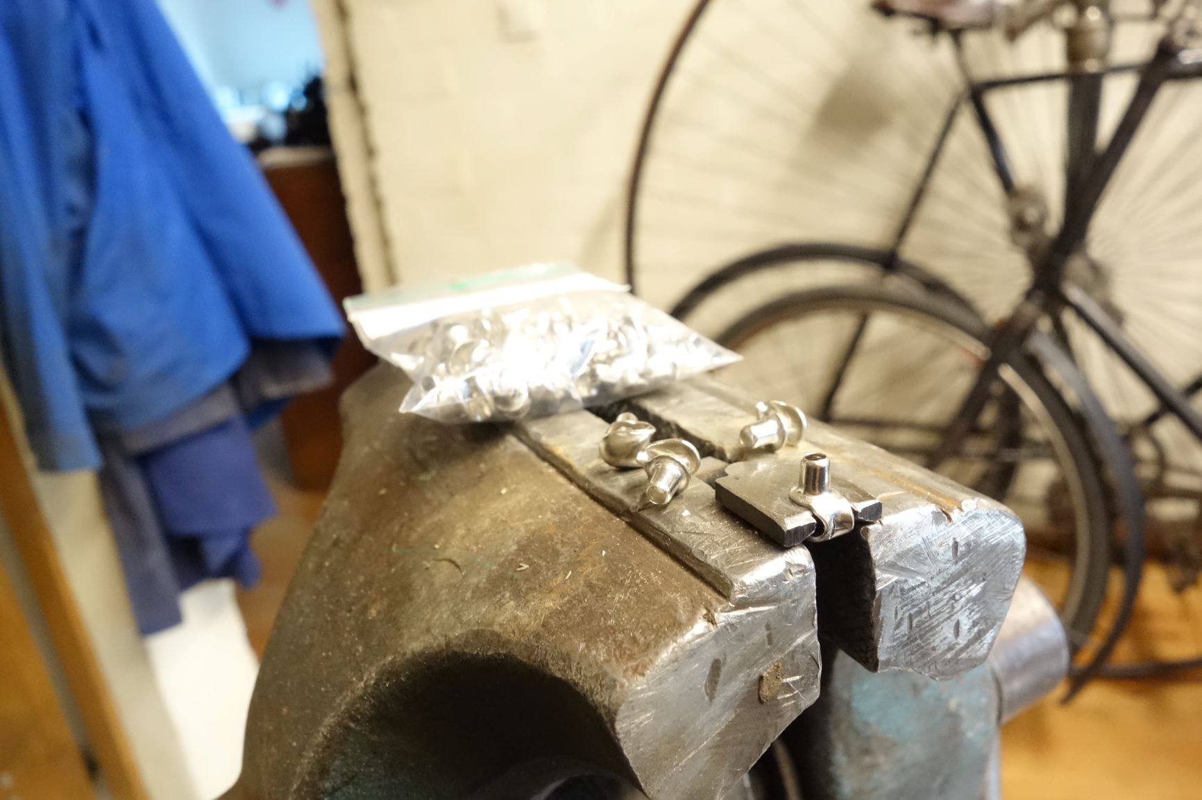Voor de haakjes heb ik zelf een aanbeeldje gemaakt dat in een bankschroef te klemmen is.
