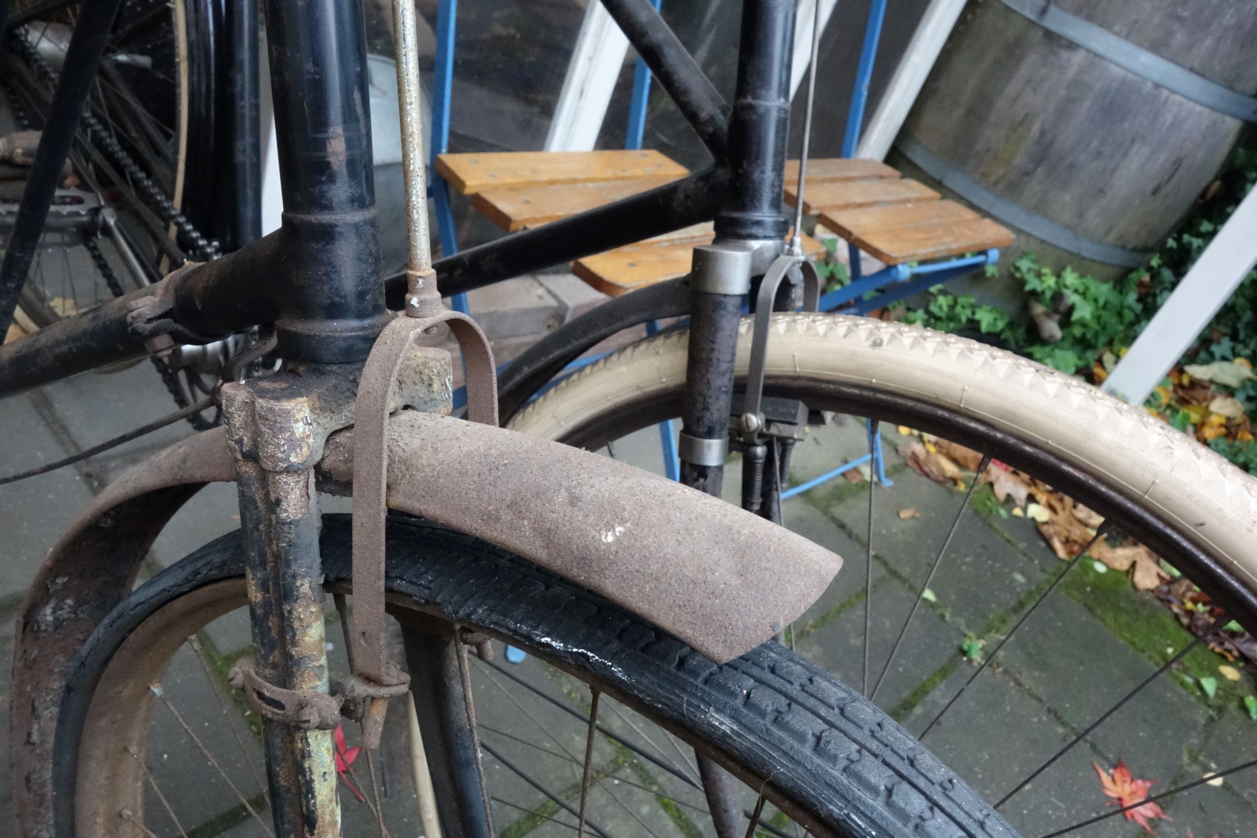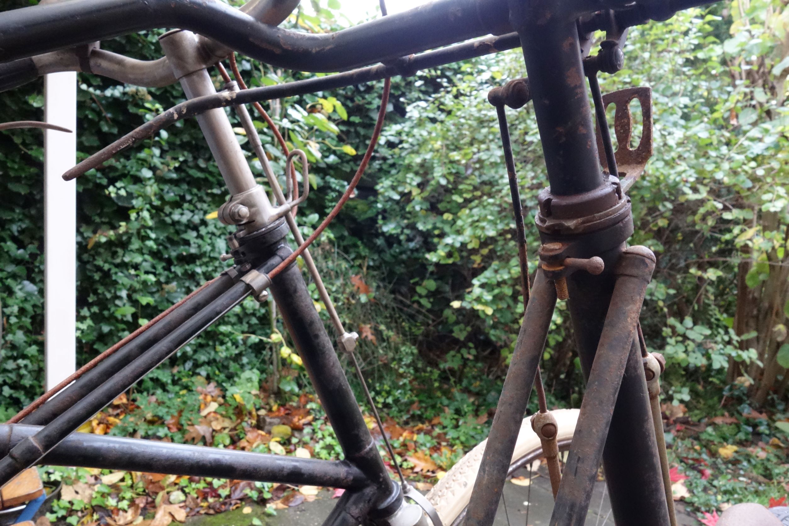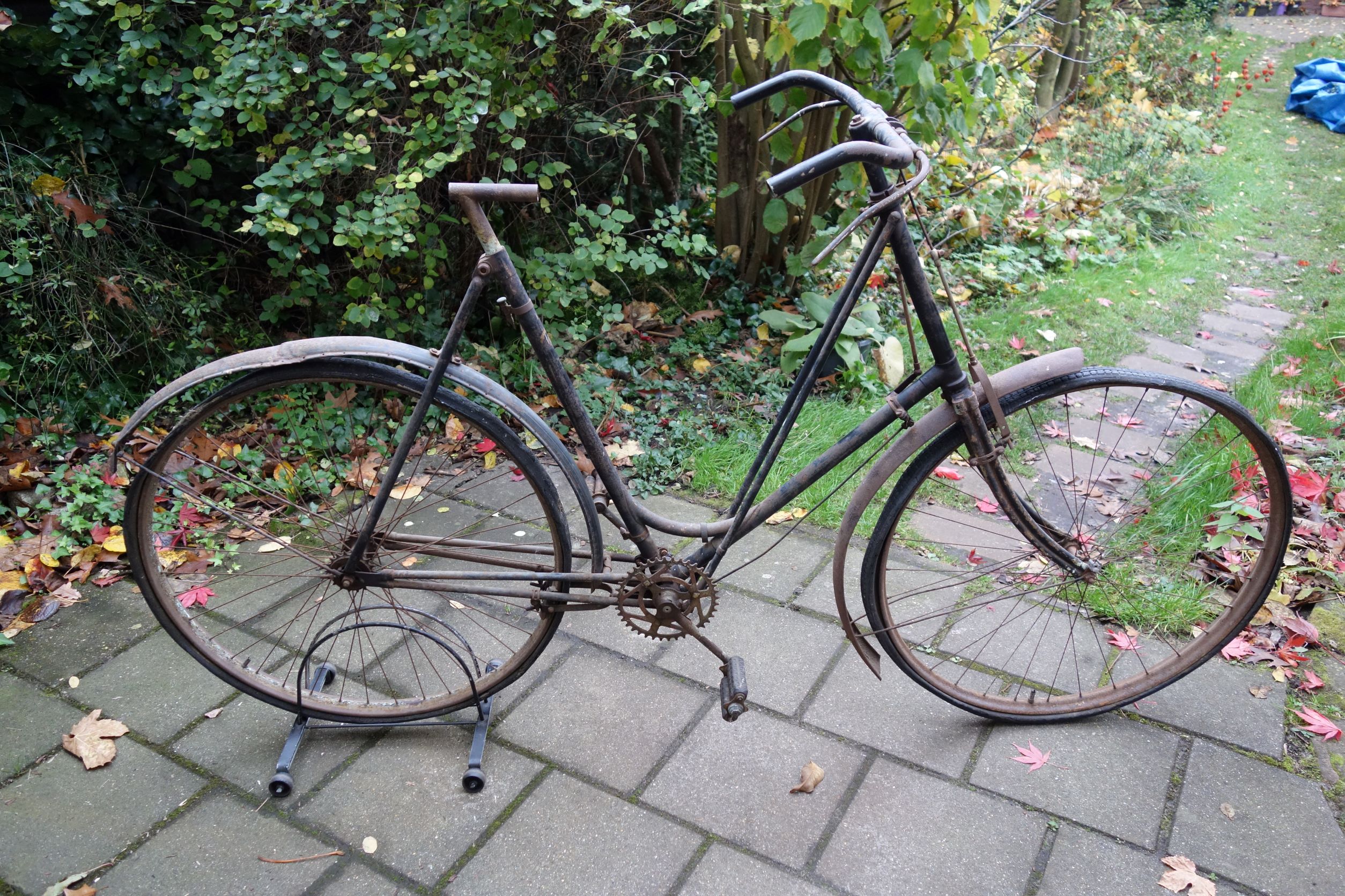 Ik heb de fiets van een Duitse mede hobbyist overgenomen maar inderdaad heeft de fiets wel een Engelse achtergrond. Zoiets kom je hier echt niet tegen. Zo oud en verwaarloosd en toch nog gespaard gebleven. Dat is meer iets voor een Franse of Engelse schuur op een landgoed of zo.