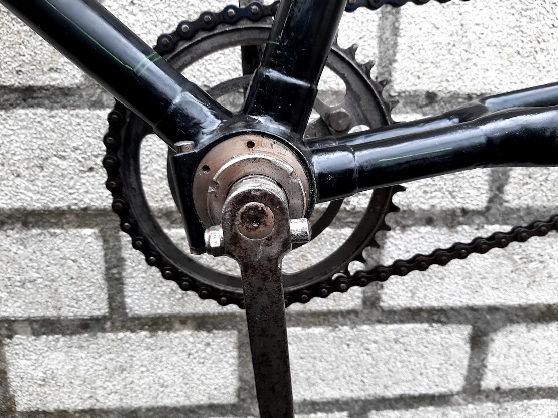 Kettingwiel en cranks zijn origineel, evenals de balhoofdstrop.