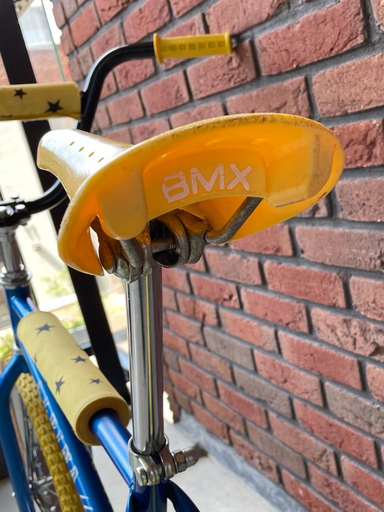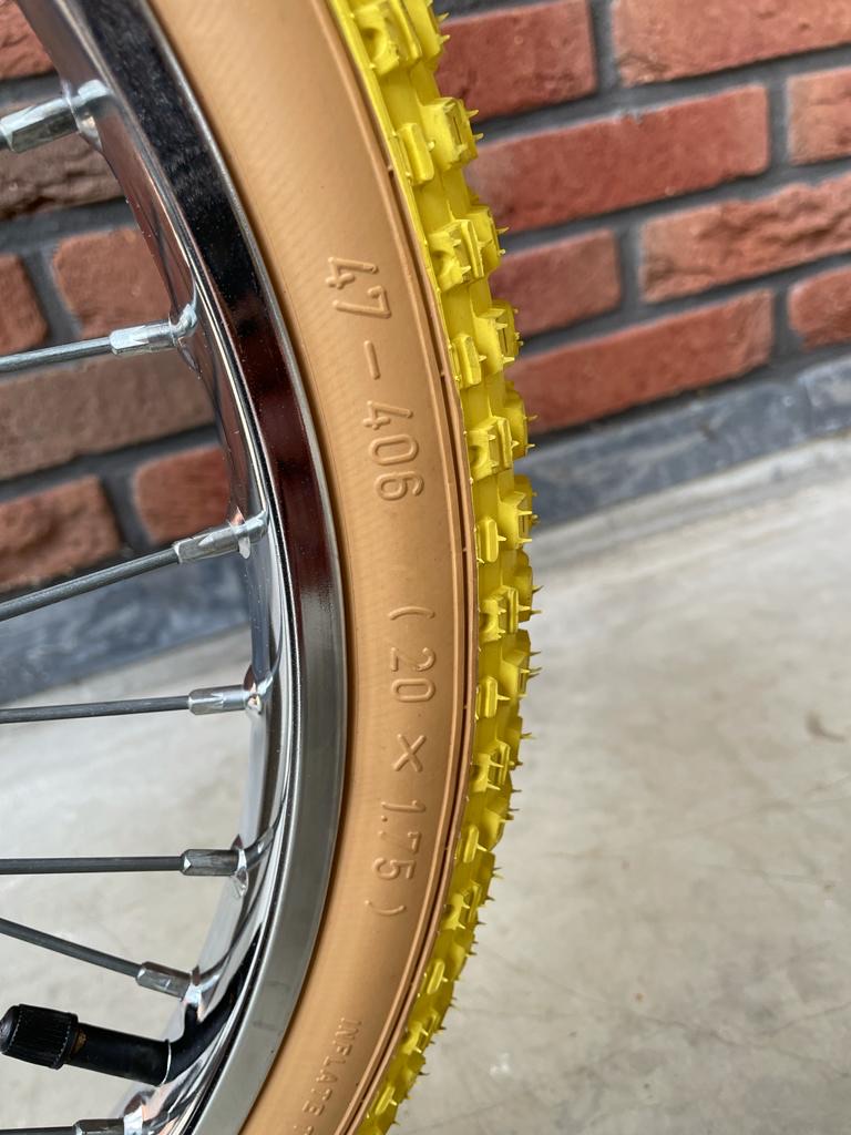 De BMX heeft nu ook het setje gele spatborden gekregen dat
