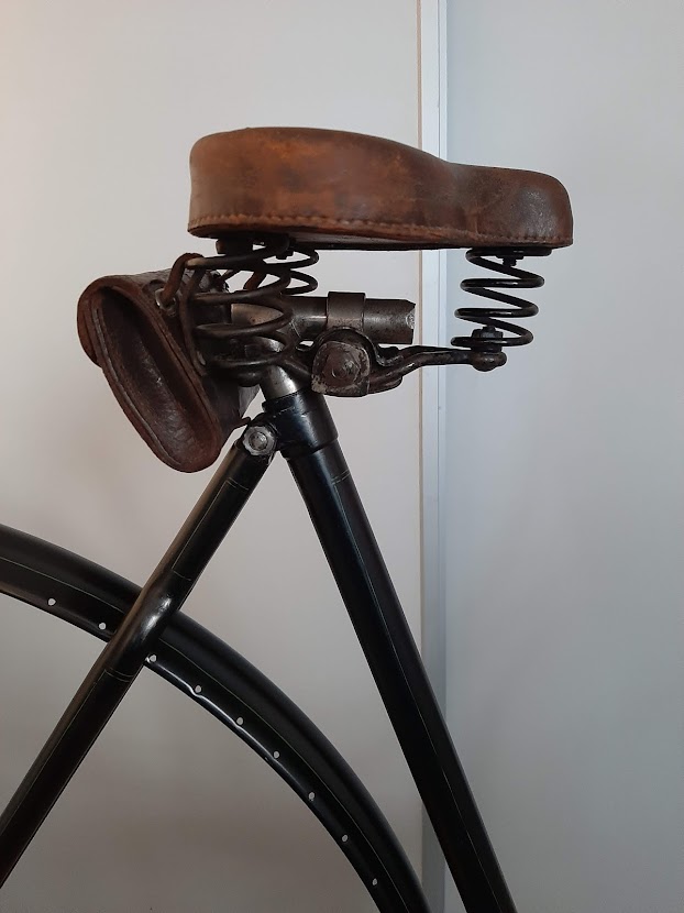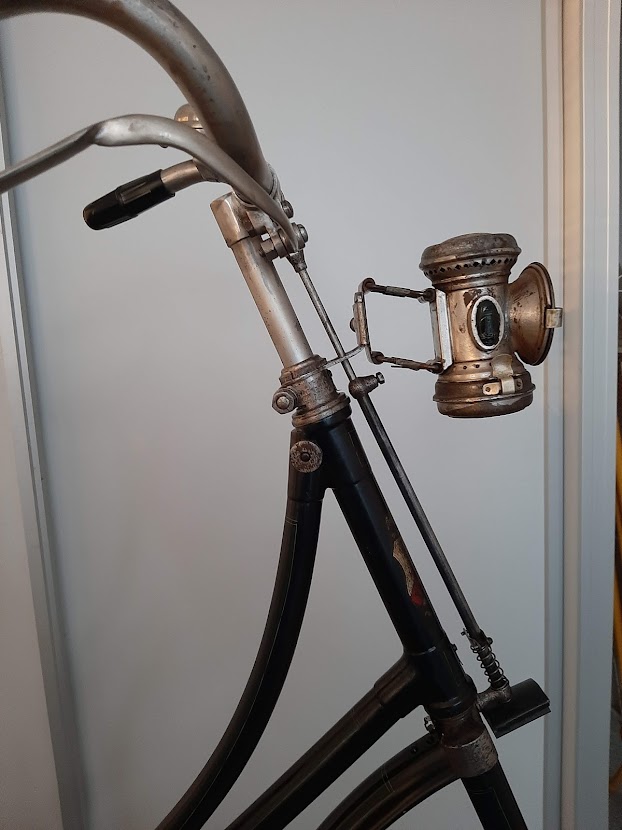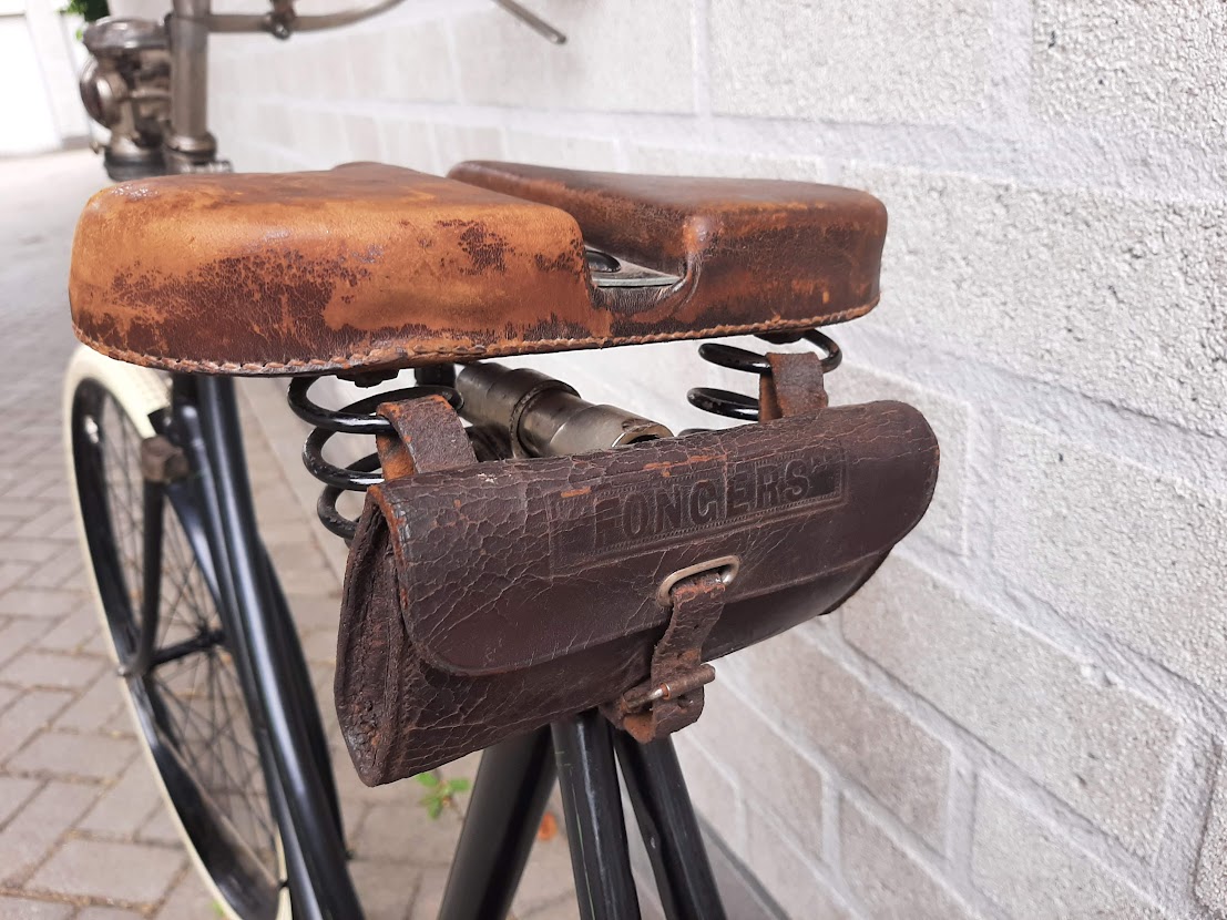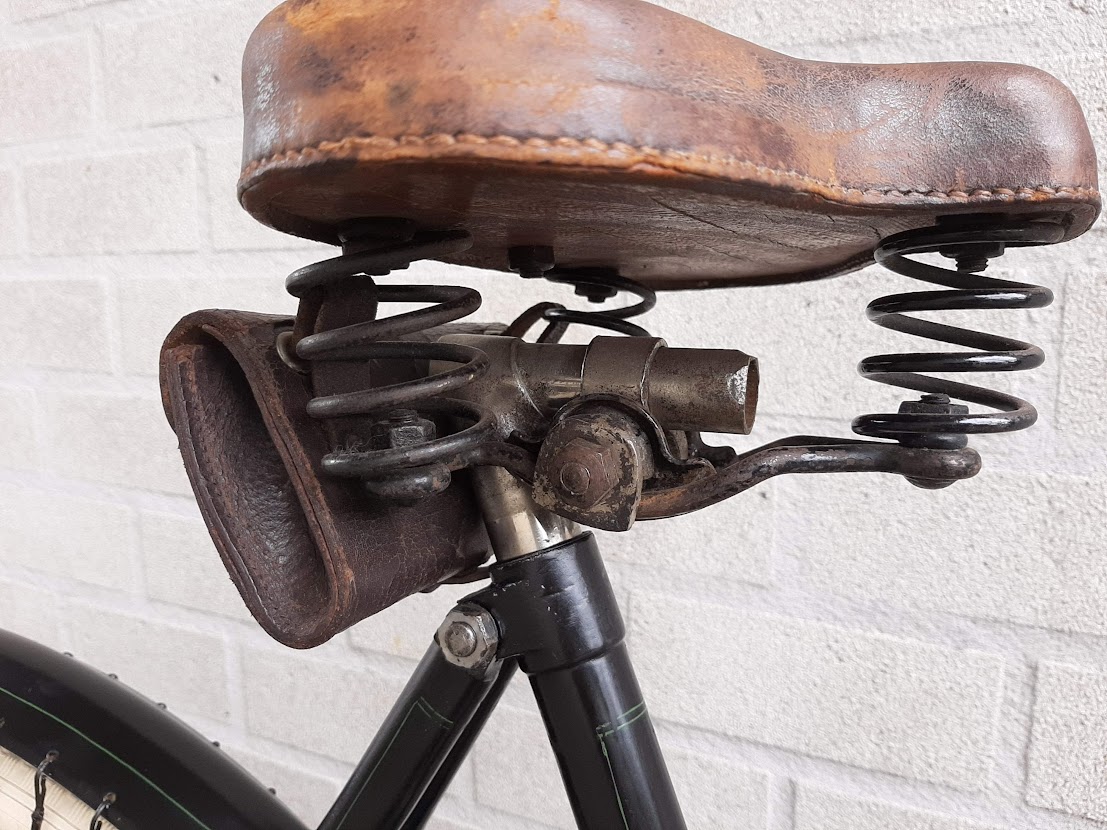 Zadel, lamp, bel en tasje uit eigen voorraad.